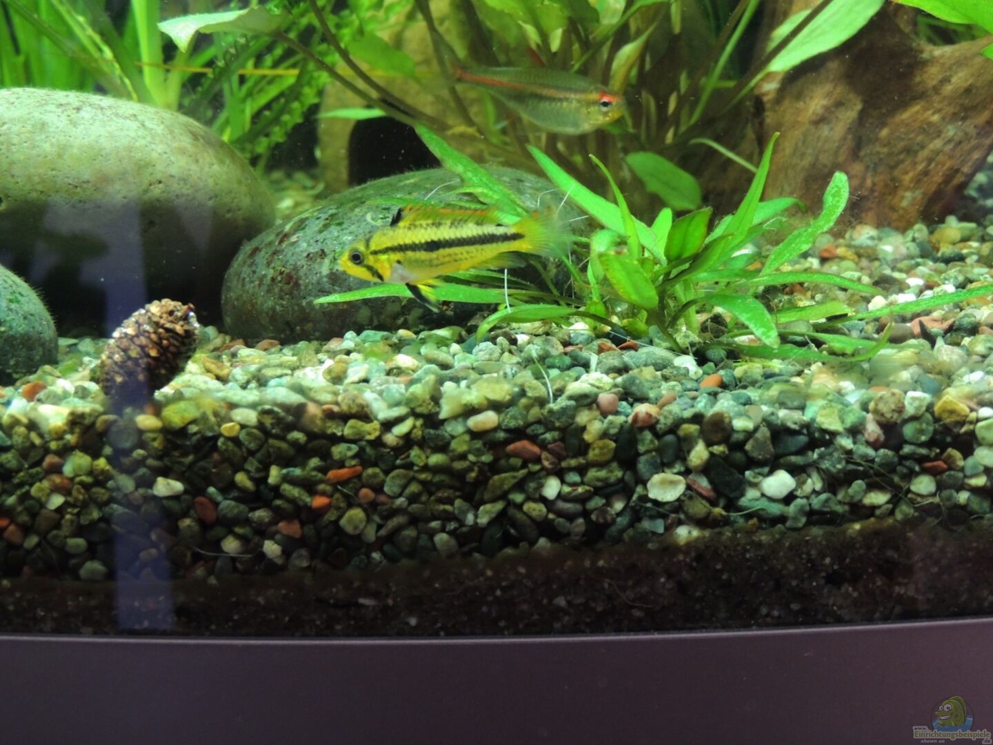 Fische: 2 (m/w) Ringelhechtlinge 7 Glühlichtsalmler 5 Sternflecksalmler 2 (w/m) Kakaduzwergbuntbarsch 2 LDA 67 2 (w) roter Hexenwels 3 Ohrgitterharnischwelse (werden nicht mehr aufgestockt) Wirbellose: 9 Geweihschnecken Hinweis: Ich wei??, dass die beiden Salmlerarten jeweils im Schwarm gehalten werden müssten. Die Glühlichter genie??en ihre Rente. Später sollen dann die Sternflecksalmler auf 10 oder 12 aufgestockt werden.