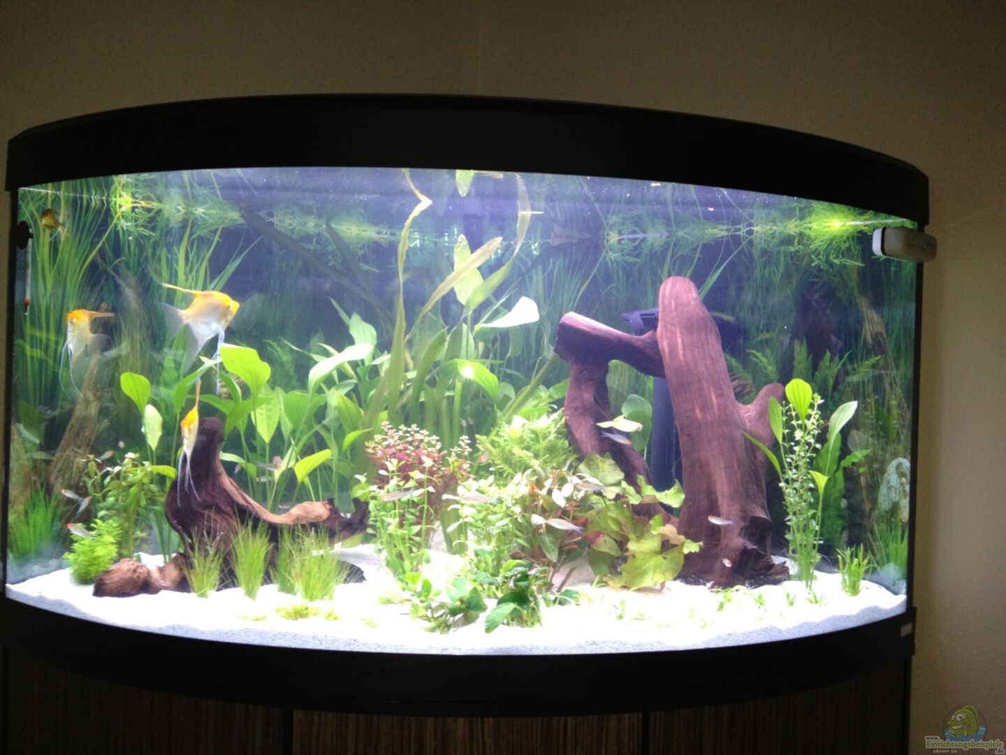 Pterophyllum scalar ( Skalar ) 3m Trichogaster trichopterus ( wei??er Fadenfisch ) 1m, 2w Hemigrammus bleheri ( Rotkopfsalmler ) 35 Poecilia reticulata ( Guppy ) 4m, 4w Pangio kuhlii ( Geflecktes Dornauge ) 7 Corydoras sterbai ( Orangeflossen Panzerwels ) 8 Corydoras panda ( Panda Panzerwels ) 10 Corydoras trilineatus ( Dreibinden Panzerwels) 10 Yasuhikotakia sidthimunki ( Schachbrettschmerle ) 3 aus meinem alten 240l Becken übernommen mittlerweile stolze 8 Jahre alt, leider nur [...]