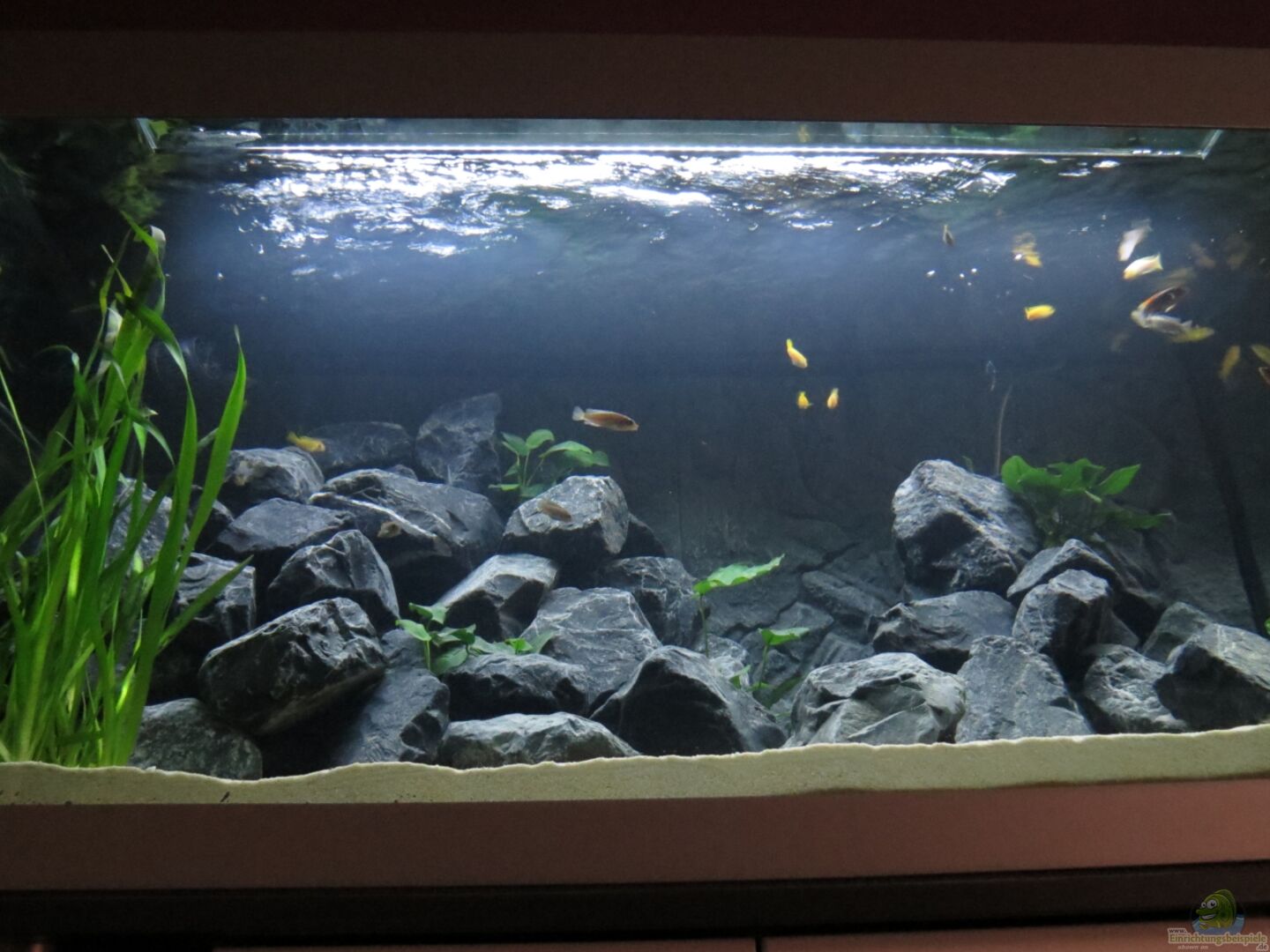 Dies ist mein erstes Malawibecken und auch das erste in dieser Grö??enordnung. Die Kombination wurde auf Wunsch von der Firma Friedeberg gefertigt. Die Scheiben sind doppelt Stossverklebt. Aufgrund des hohen Steinaufbaus auf der linken Beckenseite, habe ich die linke Seitenscheibe zusätzlich zur Styrodurplatte auf der Bodenscheibe, mit einer 2mm Plexiglasscheibe gesichert, um Unfällen durch Umfallende Steine vorzubeugen.