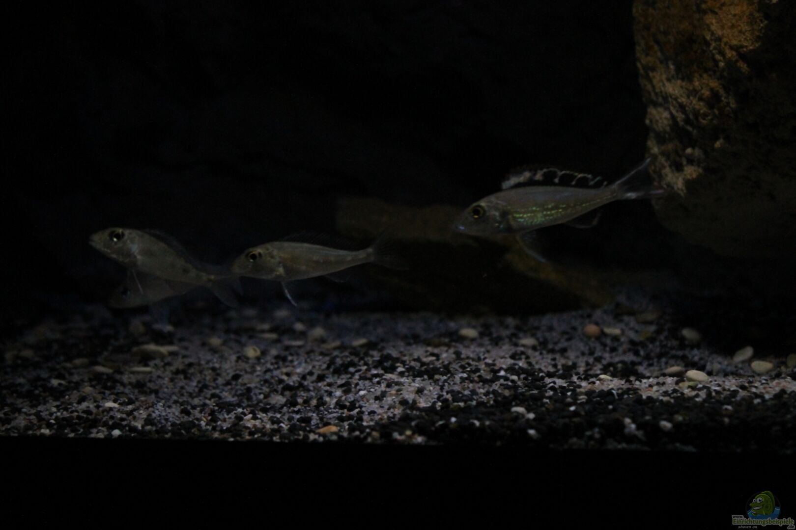-Neolamprologus caudopunctatus 1/1 DNZ -Callochromis pleurospilus 1/5 WFNZ -TDS Auf den Bildern sieht man noch das Paar Neolamprologus helianthus, welches in diesem Beispiel zu dominierend für die Anderen Arten war. Die Bilder verbleiben noch eine Weile. Diese Konstellation in diesem Becken: Der Gruppe Callochromis pleurospilus werden in diesem Becken freie Sandflächen zur Verfügung gestellt, die reichen dürften seine Sandnester zu bauen. Da dies keine grossen Krater [...]