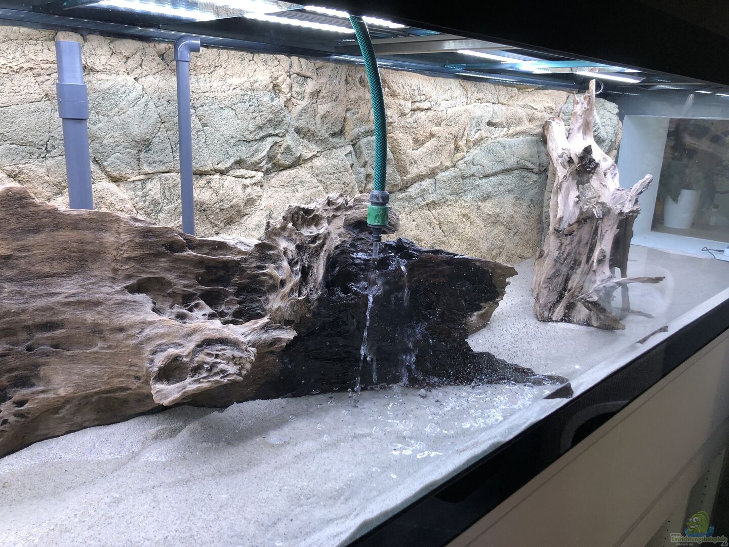 2 XXL Mangrovenwurzeln 3D Rückwand von ARSTONE, Sumatra Basalt Genesis 200 x 60, mit Silikon an Beckenrückwand verklebt. 2x 3D Modul von ARSTONE, Basalt Genesis mit Rückwand verklebt als Abschluss links und rechts