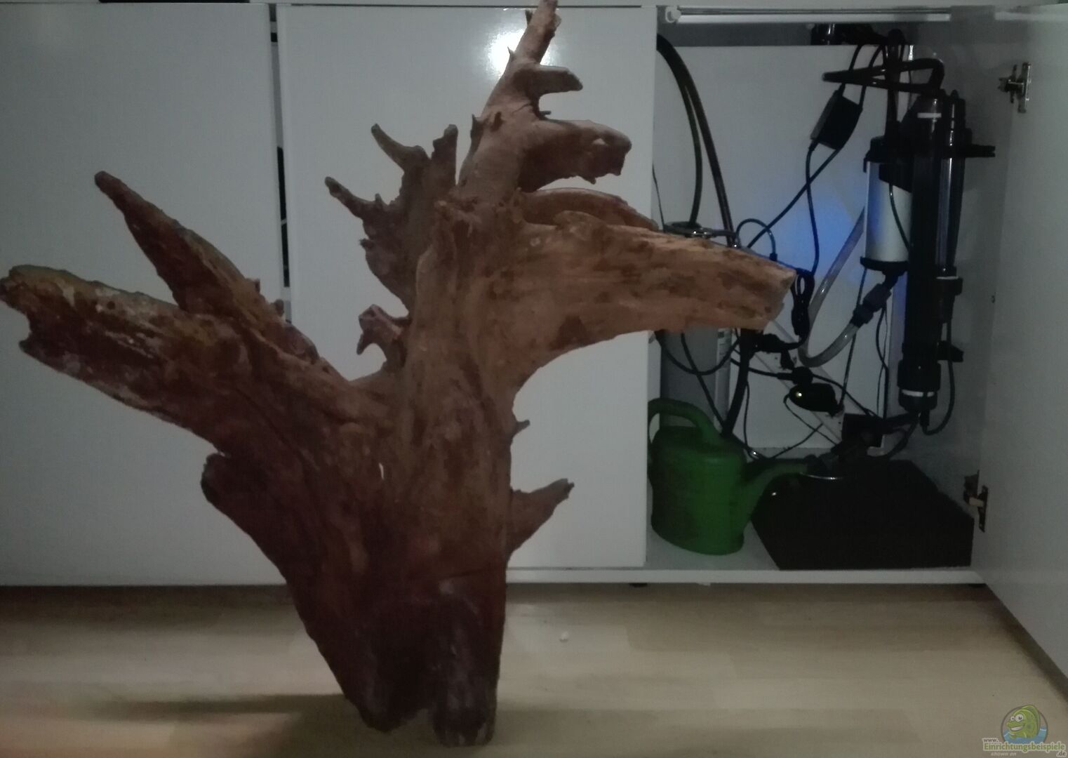 Moorkienwurzel Mangrovenwurzel XXL Schieferplatten so aufgebaut, dass hinter der Mangrovenwurzel mehrere Höhlen für die Welse bezugsfertig sind
