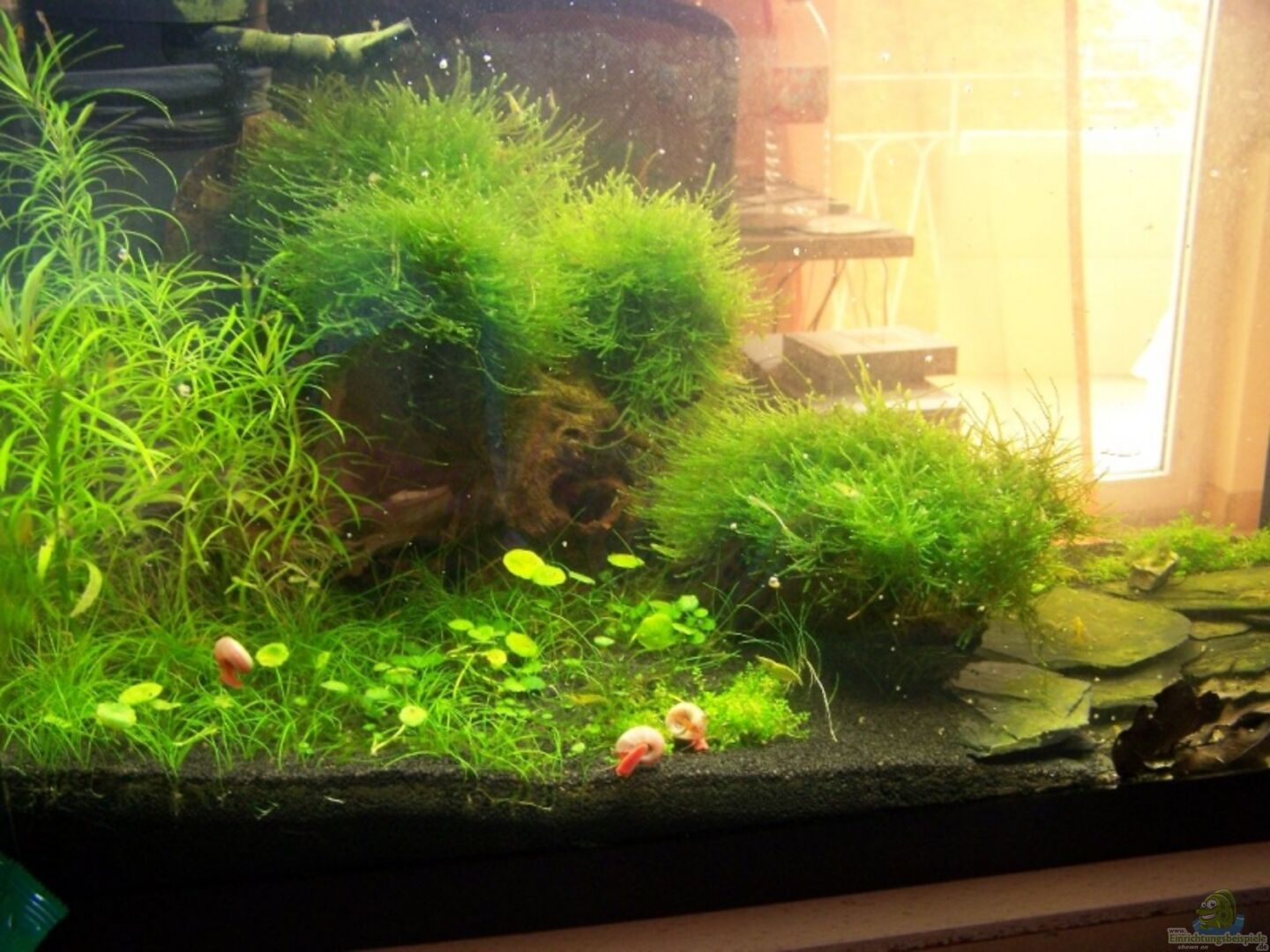 - 15 Yellows ( Neocaridina heteropoda ´Yellow´ ) --> aus den 15 Yellows sind mitlerweile ( mit Nachwuchs und kauf ) ca. 80 geworden und sie vermehren sich fröhlich weiter( 16.09.08 ) -- 8 rosa Posthornschnecken ( mitlerweile sinds sicher 100000 :D )