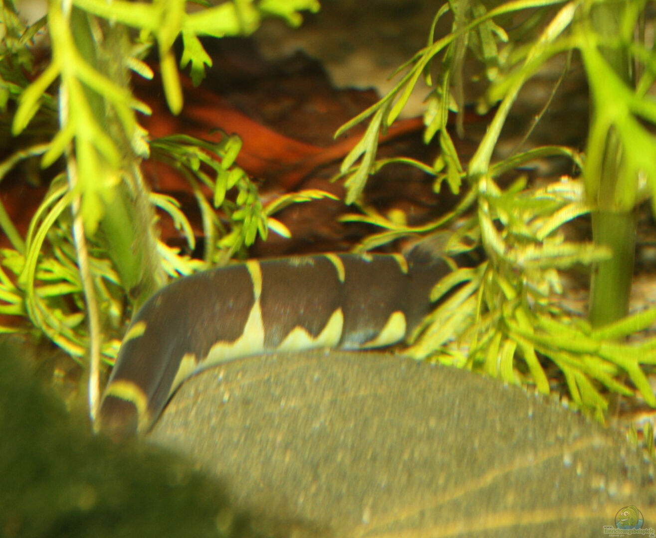 15 Sumatrabarbe - Puntius cf. tetrazona Heimat dieser Barben ist ist Südost Asien , stehende oder langsam fliessende Gewässer sind ihre bevorzugte Heimat. Dabei mag diese sehr agile Art reichlich Verstecke durch dichte Bepflanzung, gleichzeitig ist aber auch Schwimmraum zu gewährleisten, eine Gruppenstärke von "mindestens" 8 Tieren, je nach Beckengrö??e auch mehr möglich. Hinweis: Leider immer mit einem fahlem Beigeschmack weil als Flossenzupfer verschrien, [...]