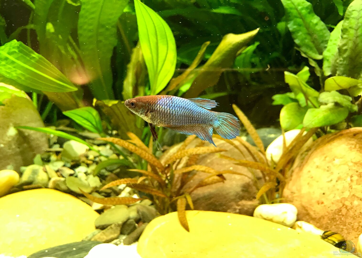 Alter Besatz aus dem Cube: 6 x Corydoras aeneus 4 x Amano Garnelen 3 x Rennschenken 1 x Betta Splendens/w Dazu gekommen am 15.12.2018 6 x Oliotius oligolepis - Einlandbarbe 3 x Pangio kuhli Die Dornaugen waren eigentlich nicht geplant. Beim Kauf der neuen Pflanzen war ein Dornauge als blinder Passagier mit im Javafarn. Alleine lassen wollte ich ihn auch nicht, also kamen noch 2 Kumpels dazu. Vielleicht kommt noch ein Pärchen Paradies Fische dazu...