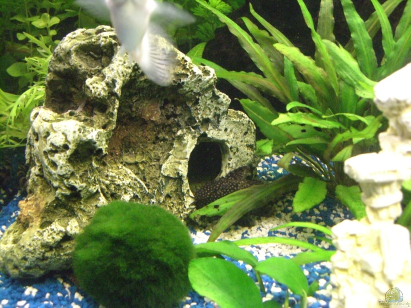 Sandkasten extra für Bodenfische (Durchmesser 25 cm) 2 kleine Wurzenl für die Welse ( Habe sie halbiert, war mir zu gross) Eine Welshöhle Diverse Versteckmöglichkeiten 3 Zusammengebundene Kunstoffrohre, das lieben unsere Dornaugen und auch eine Netzschmerle