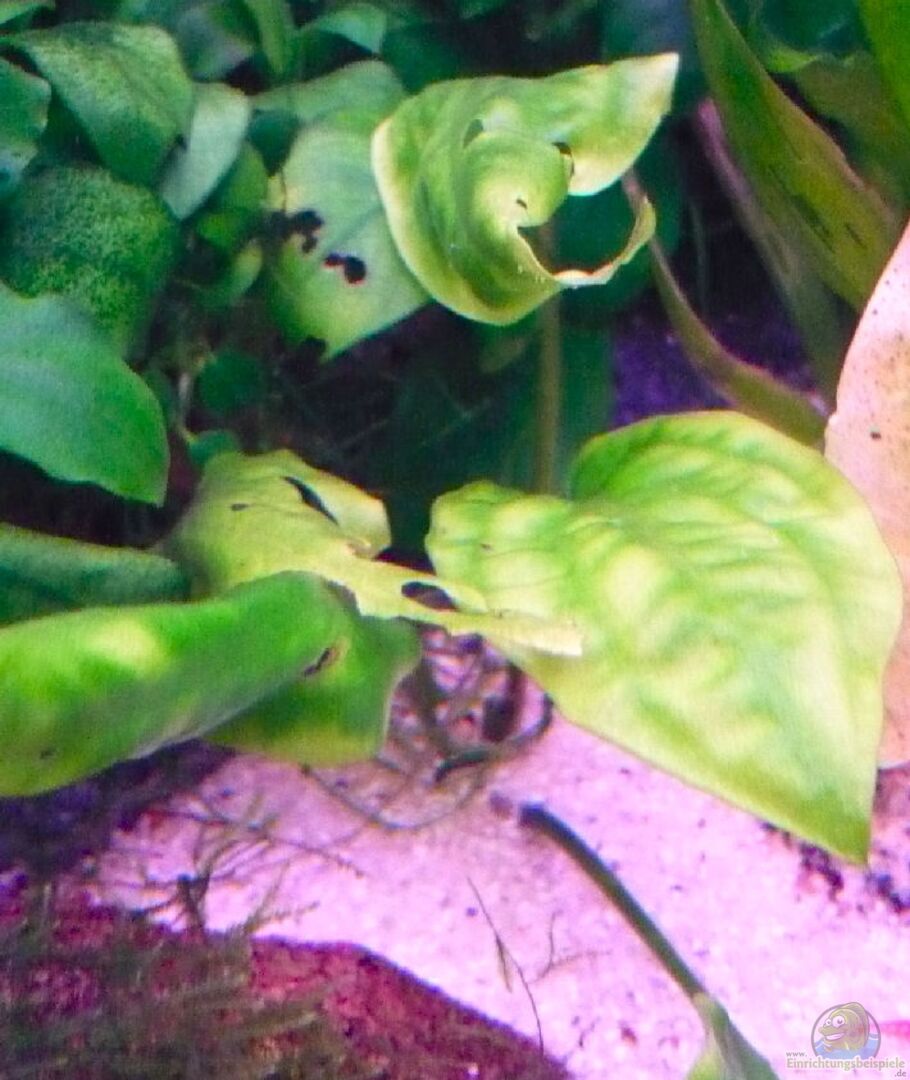 hmm - wenn ich genau rausbekommen habe wie die Pflanzen heissen, poste ich es Euch sofort ;-) soviel ist bekannt: Wasserpest, Fettblatt, 3 Mooskugeln, Vallisnerien, Anubia, ....