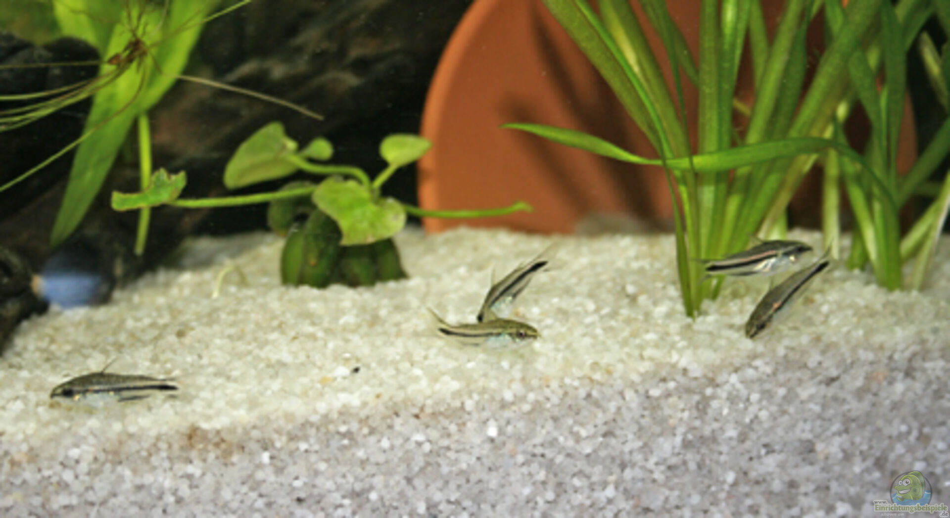 1 Zwergfadenfisch (m) - Colisa Lalia 9 Zwergpanzerwels - Corydoras pygmaeus 14 Keilfleckbärblinge - Trigonostigma espei 2 Turmdeckelschnecke Melanoides tuberculata ... diverse andere kleine Schnecken