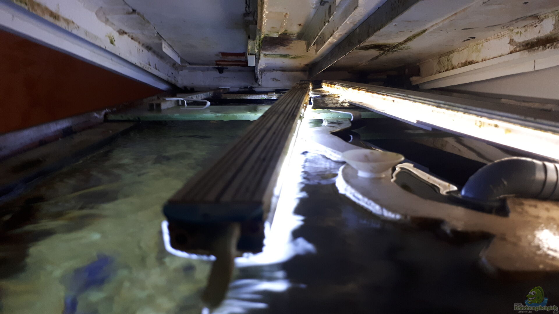 2x Eheim StreamON+ 5000 Strömungspumpe, separat und "zufällig" geschalten über zwei Zeitschaltuhren. Eheim Air400, Doppel-Membran-Luftpumpe. Die Rückseite und die linke Seite isoliert mit antrazit farbenden 15mm starken Armaflex-Isolierung. Die Abdeckung ist ein Eigenbau aus 10mm starken PVC-Hartschaumplatten (wärmeisolierend). Auf eine Zuheizung mit einem Heizstab kann somit komplett verzichtet werden, die Wassertemperatur beträgt zwischen 24 und 25°C. Im Sommer wird das Aquarium [...]