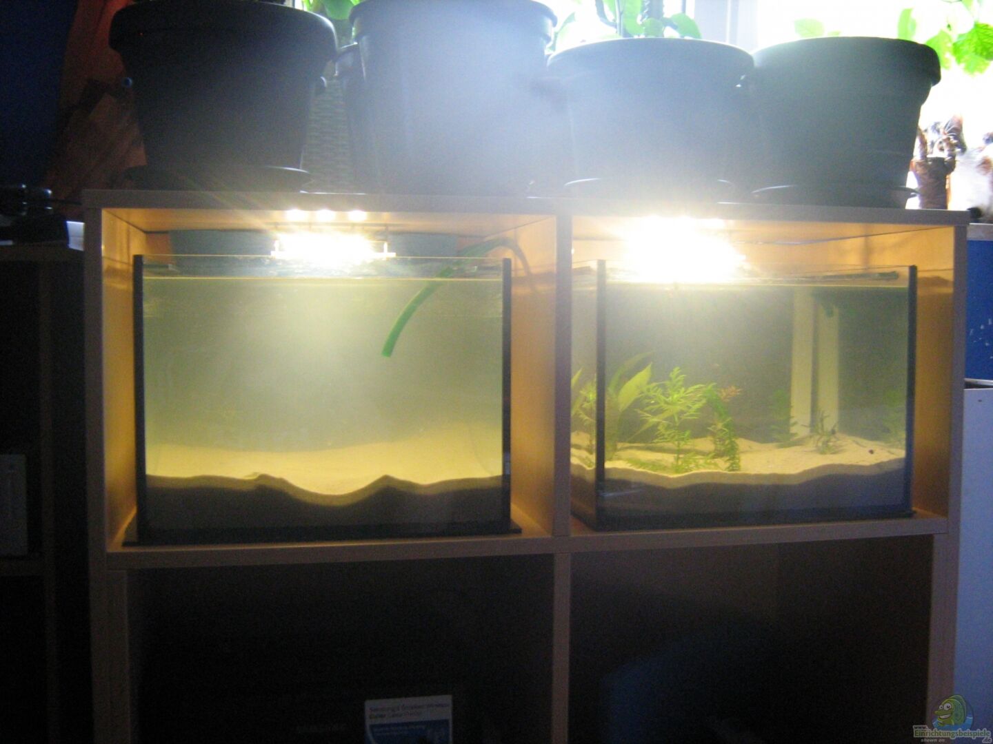 Heizstab 50W Es ist ein kleiner Arduino Mikrocontroller neben den Schrank. Er misst von den Aquarien die Temperaturen und sorgt für das Dimmen der LEDs von den oberen 2 Aquarien. Ich kann damit 2 LED Kreise verschieden dimmen und theoretisch unbegrenzt Temperaturen messen. Praktisch wird aber bei 5-10 Sensoren der Bus für die DS18S20 1 Wire Sensoren Probleme bekommen. Software ist komplett selbst geschrieben, das Arduino Uno wurde fertig gekauft, die restliche Beschaltung selbst entwickelt [...]