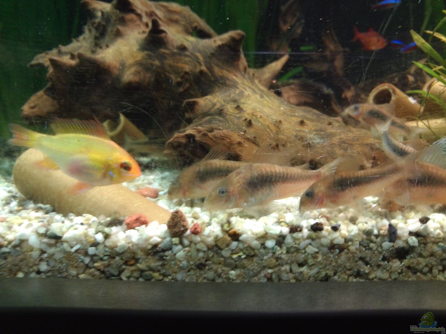 12 x roter Neon (gro??e Tiere ca. 3-4 cm) 2 x Blutsalmler (wurden übernommen und verbringen nun ihren wohlverdienten Lebensabend im Becken) 1 x Rio Negro Skalar (Höhe ca 13cm. habe ich ebenfalls übernommen- leider bin ich mir nicht sicher ob m oder w- würde gerne einen passenden Partner für ihn/sie finden- mir ist es aber bei der Grö??e zu riskant, dass es garnicht funktioniert :-( ) 1m/1w Schmetterlingsbuntbarsch gold Mikrogeophagus ramirezi (ich habe ein Weibchen übernommen [...]