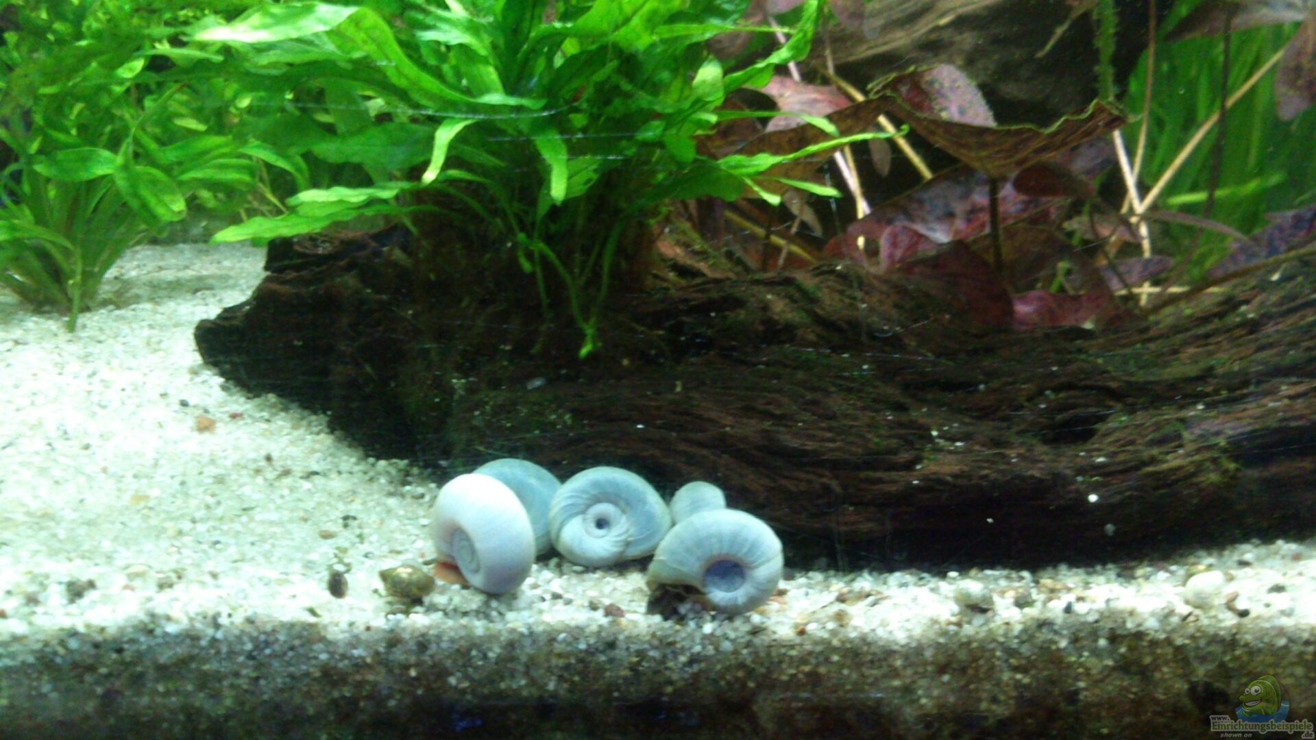Des weiteren habe ich in dem Becken als Dekoration: - ca. 50-60 dunkelgraue Kieselsteine - Gro??e Moorkinwurzel - Mittlere Mangrovenwurzel - Mittlere Moorkinwurzel - Kleinere Moorkinwurzel - ein Lavastein - zwei Schieferplatten - dienen als Höhle - Mehrere dekorative Steine, alle aus einem Fachhandel, aus der Aquaristik-Abteilung - Seemandelbaumblätter (Catappa XL, JBL)
