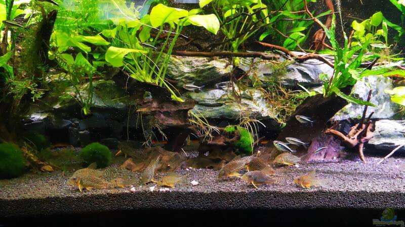 Aktueller Besatz 24x Amano Garnele - Caridina multidentata DNZ 15x Jungtiere + 9x aus Altbestand 14x Schwarzer Neon / Schwarzer Flaggsalmler - Hyphessobrycon herbertaxelrodi 11x Orangeflossen Panzerwels / Corydoras Sterbai aus Altbesatz 10x L46 Zebra Harnischwels / Hypancistrus zebra