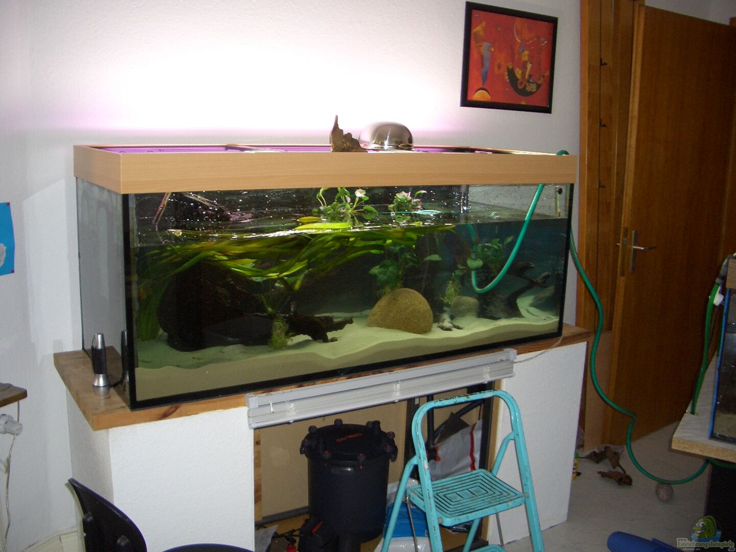 Der Unterschranck wurde gebraucht gekauft.Er besteht aus einem Rohrahmen, geschwei??t und mit Hammerrit Farbe lackiert. An den Rändern ist zusätzlich eine Holzverlattung angebracht. Der Unterschranck ist mit MDF-Platten verkleidet, die mit Rauhfaser beklebt wurden, die wei?? gestrichen wurden. Vorne ist als Zugang zu der Technik ein wei??es Faltrollo angebracht. Das Becken steht auf einer 4cm straken Leimholzplatte die 180x60 misst.