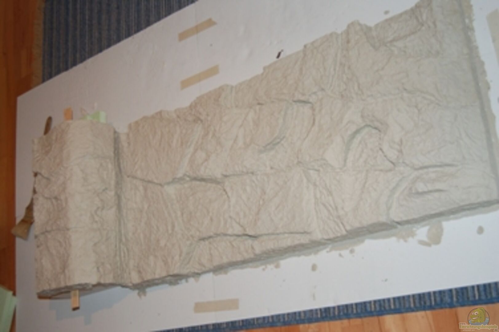 Rückwand: Selbst gebaute Rückwand aus Styropor, Zement und Granit-Effekt-Spray.Die Rückwand wurde mit 2 Lagen Epoxidharz der Fa. Breddermann (geeignet für Aq) überzogen. Absolut wasserdicht und sieht toll aus. Dank an alle, die hier und in anderen Foren ihre Tipps veröffentlicht haben. Bei den folgenden Bildern seht ihr, wie es gemacht wurde. Wer eine genauere Anleitung sucht kann mich gerne anschreiben.