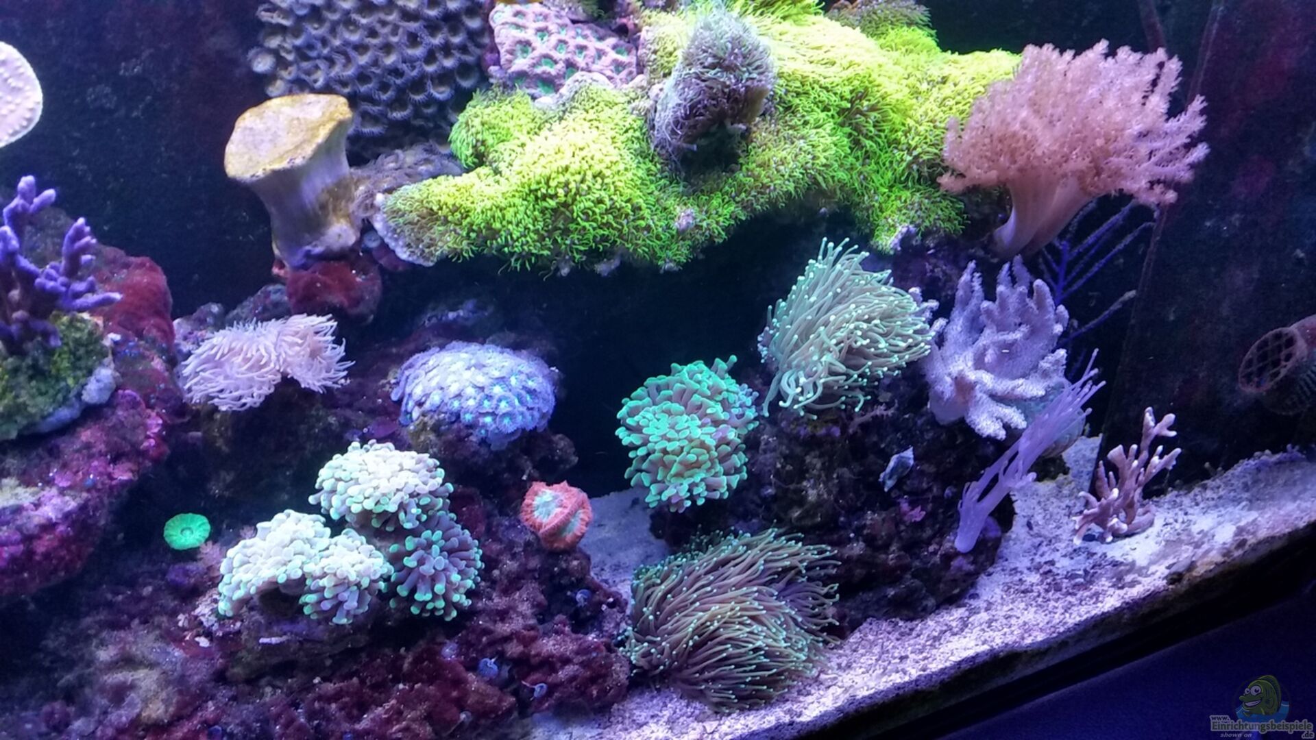 1 Zebrasoma scopas (Brauner Doktorfisch) 1 Cirrhitichthys falco (Zerg-Korallenwächter) 2 Lysamata amboinensis (Putzergarnele) 3 Chrysiptera hemicyanea 1 Pictichromis paccagnellae (Nymphen-Zwergbarsch) 10 Einsiedlerkrebse 3 Turboschnecken Div. Anemonen- und Korallenarten.