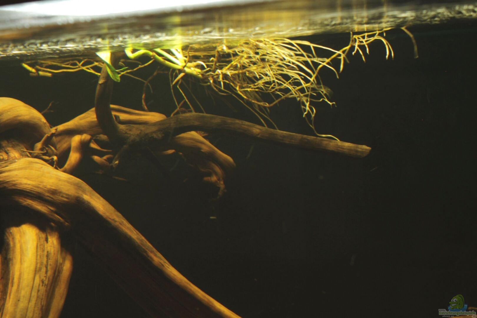 submers keine mehr au??erhalb des Wassers sind ein paar einzelne Triebe einer Efeutute angebracht und die Wurzeln dieser hängen im Wasser. So habe ich einen weiteren Nährstoffzehrer. 14.10.2012 es zeigt sich ein rasantes Wachstum der Efeutute und deren Wurzelwerk. Wahnsinn, ich hätte nicht gedacht, das diese so Wachstumsfreudig ist, naja dementsprechend wird sie mir auch die benötigten Nährstoffe aus dem Wasser ziehen, aber dies ist ja so gewünscht.