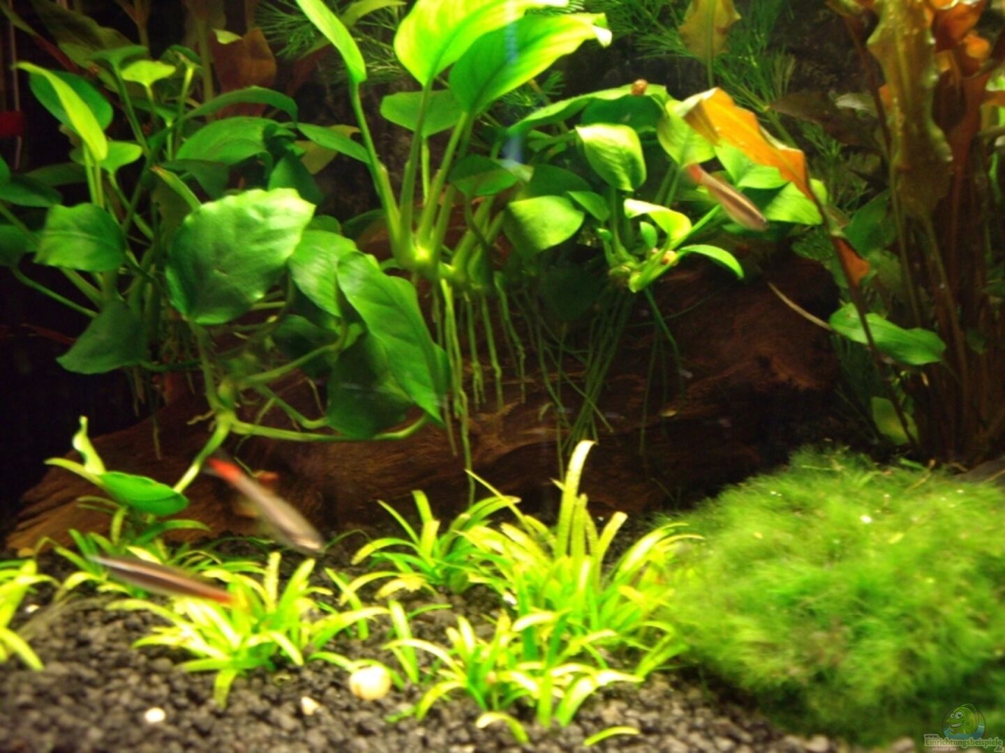 Sagittaria platyphylla - Breitblättriges Pfeilkraut Anubias barteri var. nana - Zwergspeerblatt Vallisneria spiralis - Glattblättrige Vallisnerie Egeria densa - Dichtblättrige Wasserpest Vesicularia dubyana - Javamoos Lemna minor - Wasserlinse Cryptocoryne wendtii - Breitblättrige Wendtii Cabomba caroliniana - Grüne Cabomba Alternanthera reineckii ???Burgunderrot??? - Burgunderrotes Papageienblatt Mooskugel