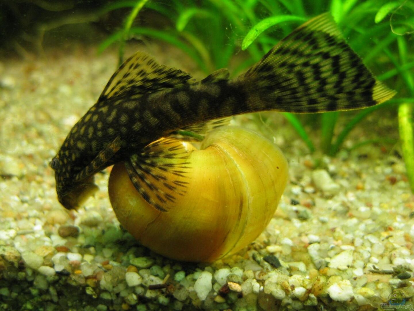 Diese Apfelschnecke hat der Ancistrus noch geputzt, bevor die Prachtschmerlen sie von Rheinländer (42)