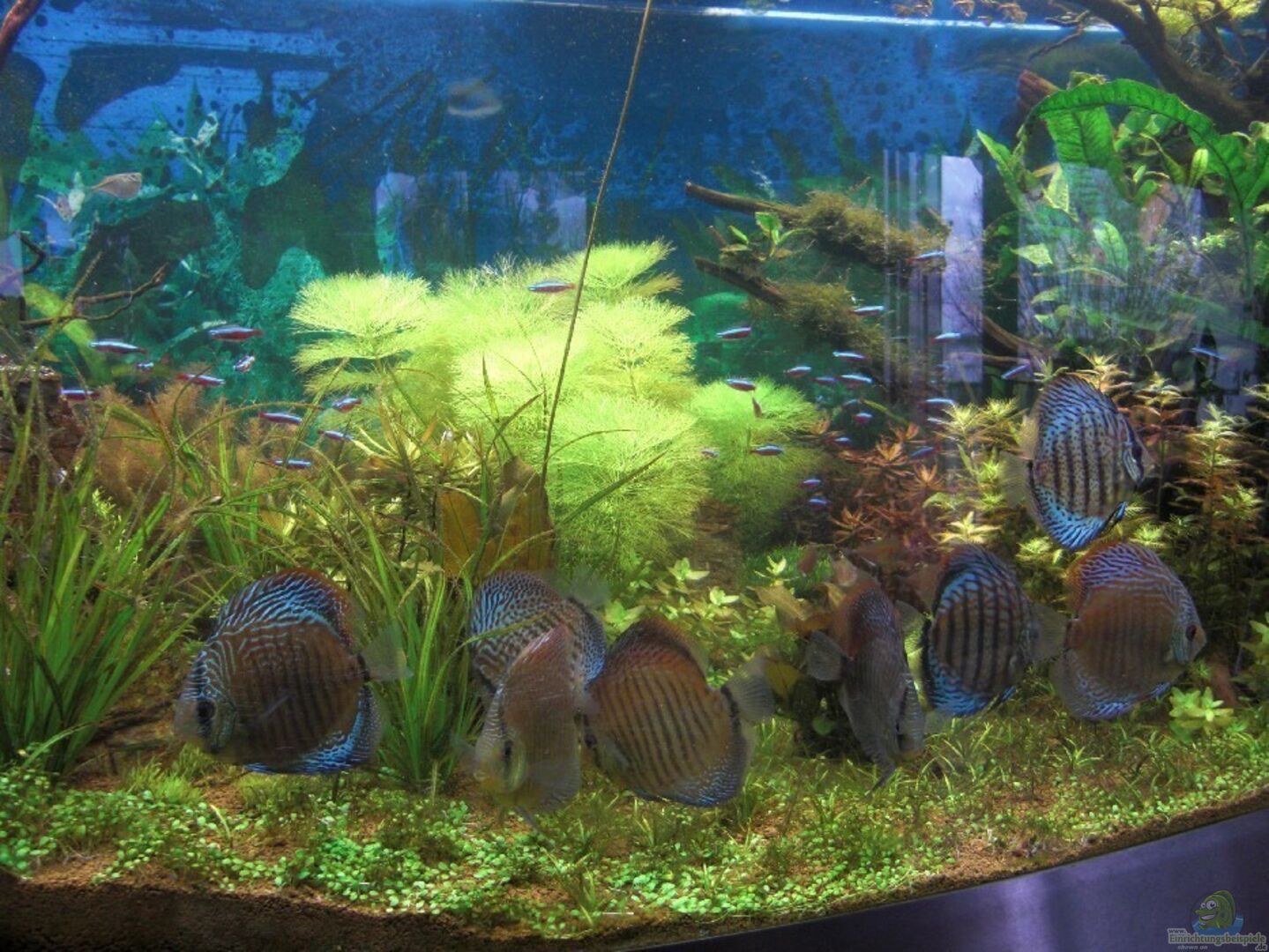 9 Snake Skin und Leopard Snakeskin Diskus ( ca. 1/2 Jahr alt ) 25 Kirschflecksalmler, ca. 50-60 Neons, 13 marmorierte Beilbäuche. Dazu ca. 50 Amano Garnelen und ca. 20-30 andere Garnelen Arten, die mir den Boden und die Pflanzen sauber halten!! für den Bodengrund eine unbekannte Zahll Turmdeckelschnecken und 10 Teufelsschnecken.