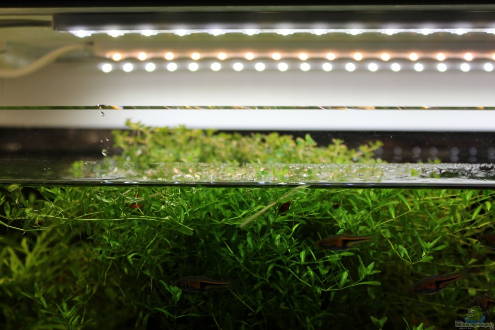 Hinten von links nach rechts - Hygrophila difformis (Indischer Wasserstern) Diese aus Südostasien stammende Pflanze braucht sehr viel Licht und sollte daher nicht zu dicht eingepflanzt werden. Sie kommt mit hartem und weichen Wasser und mit pH-werten von 5-9 zurecht, die Temperatur sollte zwischen 22 und 30°C liegen. Sind diese Voraussetzungen erfüllt, ist sie eine hübsche und anspruchslose Anfängerpflanze, die Gleichgewicht im Aquarium schaffen kann. Das schnelle Wachstum hilft bei der [...]
