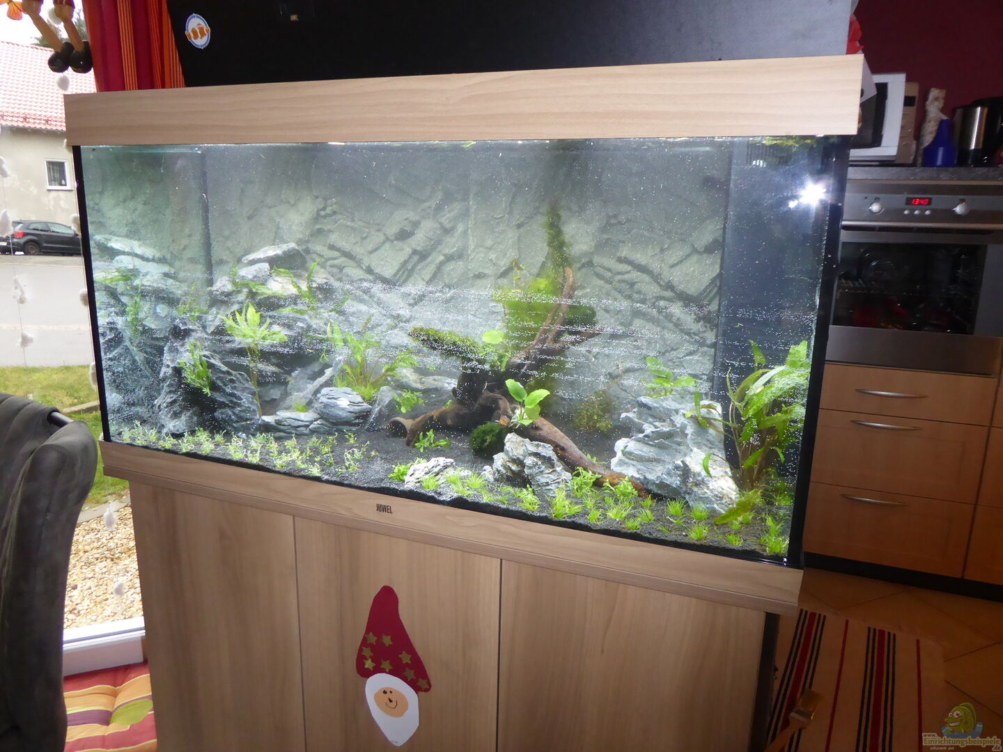 Als Rückwand benutze ich die "Stone Granit" von Juwel. Diese habe ich dann mit einem standard Aquarienkleber befestigt. Auf den Boden habe ich eine 2mm Plexiglasscheibe gelegt, damit das Glas nicht durch die Steine beschädigt wird. Die Platte am besten vor der Rückwand einsetzen. ich bekam die Platte nicht mehr rein und habe sie in der mitte geteilt. Beim Einkleben der Rückwand habe ich ca. 1cm Abstand vom boden gelassen. Da dies mein zweites Becken ist, habe ich die Filtermedien [...]
