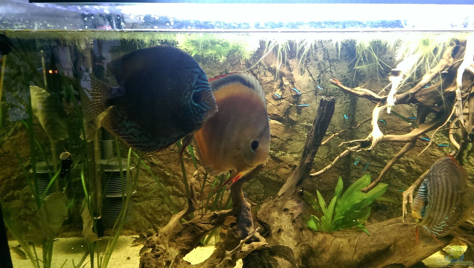 35 x roter Neon 16 x Orangenflossenpanzerwels RedFire Garnelen, keine Ahnung wie viele, schätze so um die 40. Die sind vor 14 Tagen aus einem anderen Becken ins grosse umgezogen. 6 x Diskus, 4 x rot-türkis und 2 x Alenquer 1 Paar Schmetterlingsbuntbarsche Die Anzahl der Garnelen hat sich deutlich erhöht.