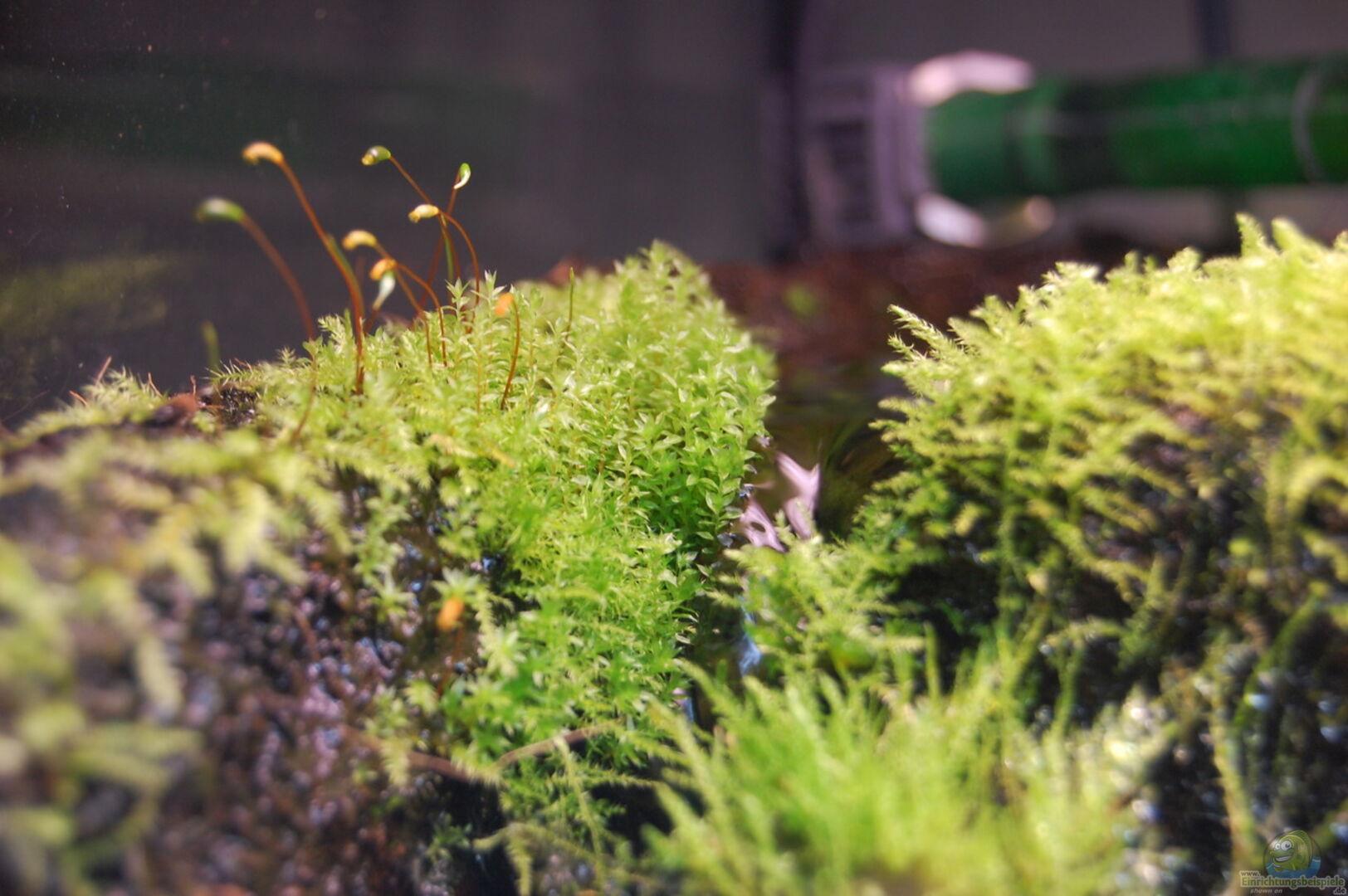 Schwimmpflanzen: Lemna minor, Limnobium laevigatum Wasserpflanzen: Ceratophyllum demersum, Echinodorus x Regine Hildebrandt, Anubias barteri Nana, Acorus gramineus Moose: Riccia fluitans, Taxiphyllum barbieri, Monosolenium tenerum Landpflanzen: Barbosella cucullata, Biophytum sensitivum, Begonia bowerae, Episcia dianthiflora, Ficus scandens, Neoregelia fireball, Neoregelia pauciflora, Neoregelia Red spottet, Peperomia, Ficus borneo, Selanginella spec, Ficus quercifolia