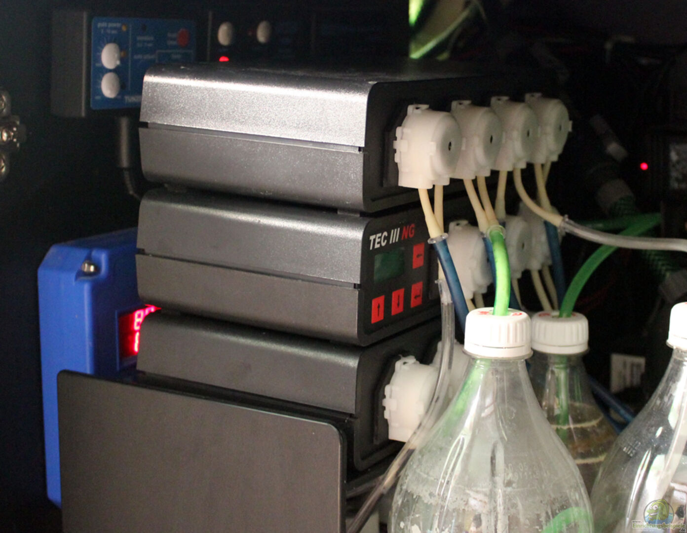 Strömungspumpen ------ 2 x TUNZE Turbelle nanostream 6055 1.000 - 5.500l/h am TUNZE Controller in Wechselströmung Sonstige ------ 1x Tunze Controller gesteuert über Photosensor für NanoStream 1x Tunze SingleController gesteuert über Photosensor für Tunze Silence Rückförderpumpe 1x Tunze Water Level Alarm, schaltet alle Pumpen und Abschäumer 1x Durchlaufkühler von TECO mit UV-C 18Watt und Heizer 400Watt 1x GroTech III NG 11 Kanal Dosierpumpe für Balling und sonstiges 1x [...]