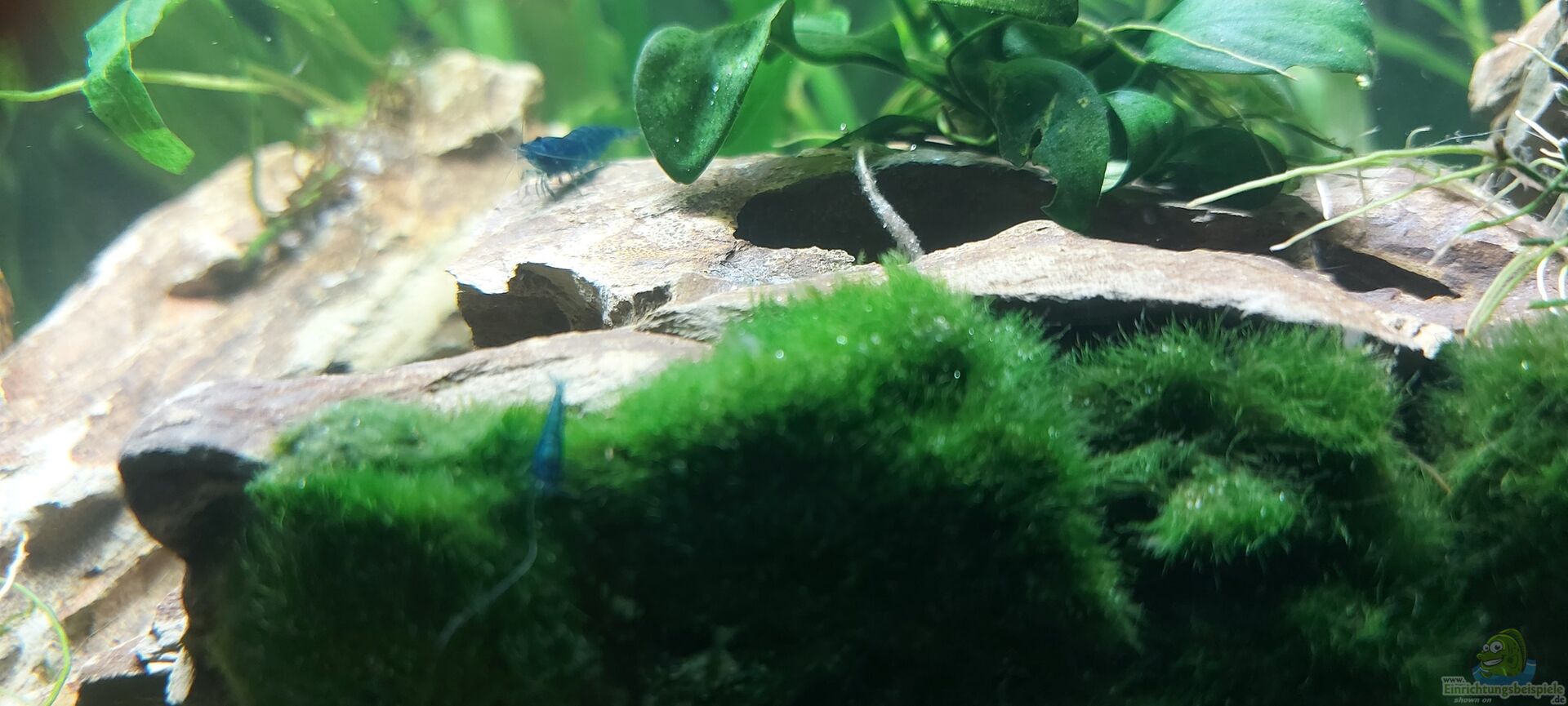 Folgende Pflanzen sind an die Drachensteine geklebt: (mit NatureHolic Sekundenkleber, unschädlich für alle Bewohner) - Anubias nana - Javafarn - Teichlebermoos - Flammenmoos
