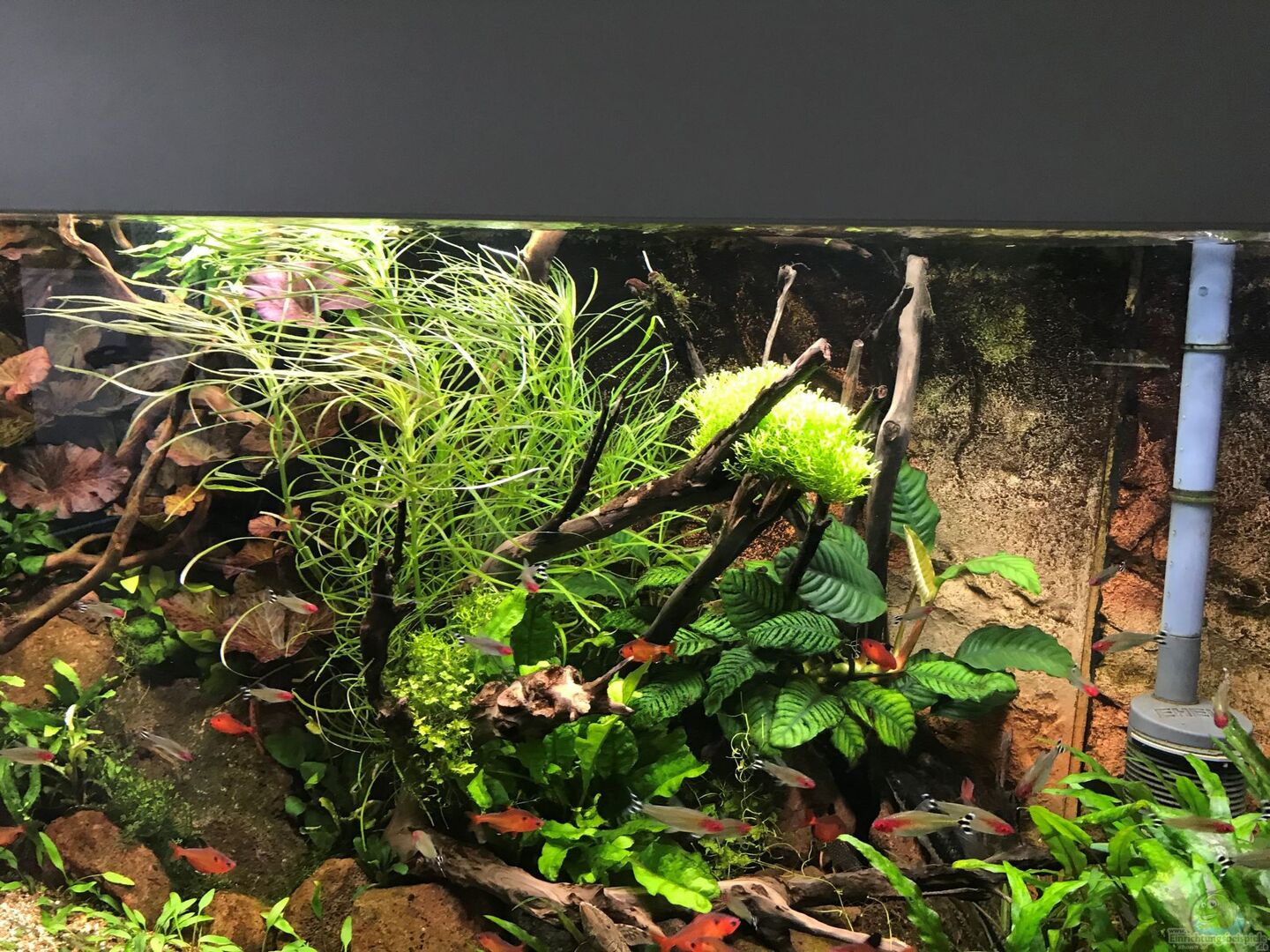 Ich versuche in diesem AQ Aquascaping mit den Bedüfnissen der Fische zu verquicken. Die Harmonie des Layouts ist genauso wichtig wie z.B. Unterstellmöglichkeiten für die Blutsalmler , sowie Rüchzugsmöglichkeiten für Garnele und Co.