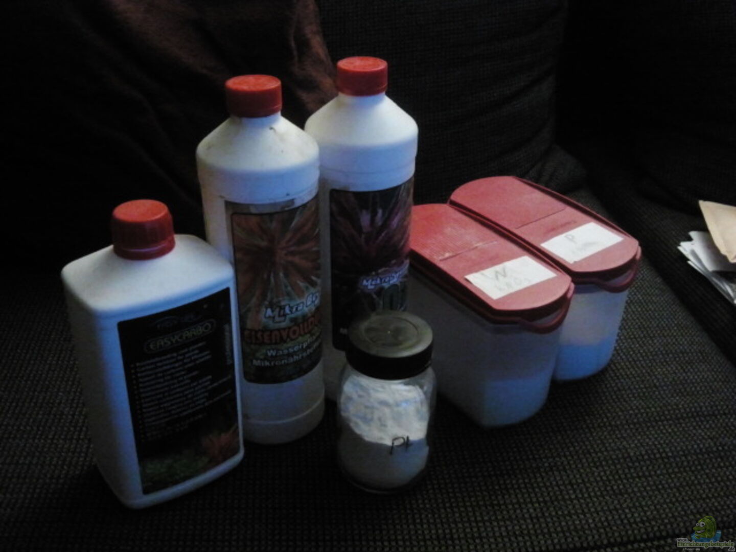Co2 2kg über Diffusor Druckminderer ist ein Billigteil für 8 eur aus China. Funktion für das erstaunlich gut. Diffusor ist ein "normaler" Eheim Sauerstoff Diffusor, nur das eben der Co2 Schlauch dran hängt und das Co2 sehr fein im Becken verteilt. Flasche ist eine normale 2kg Mehrwegflasche, die ca. ein halbes Jahr reicht. Geplant ist noch ein Controler, solang aber keine Bewohner im Becken sind, dienen hohe Co2 dem beschleunigten Wachstum.