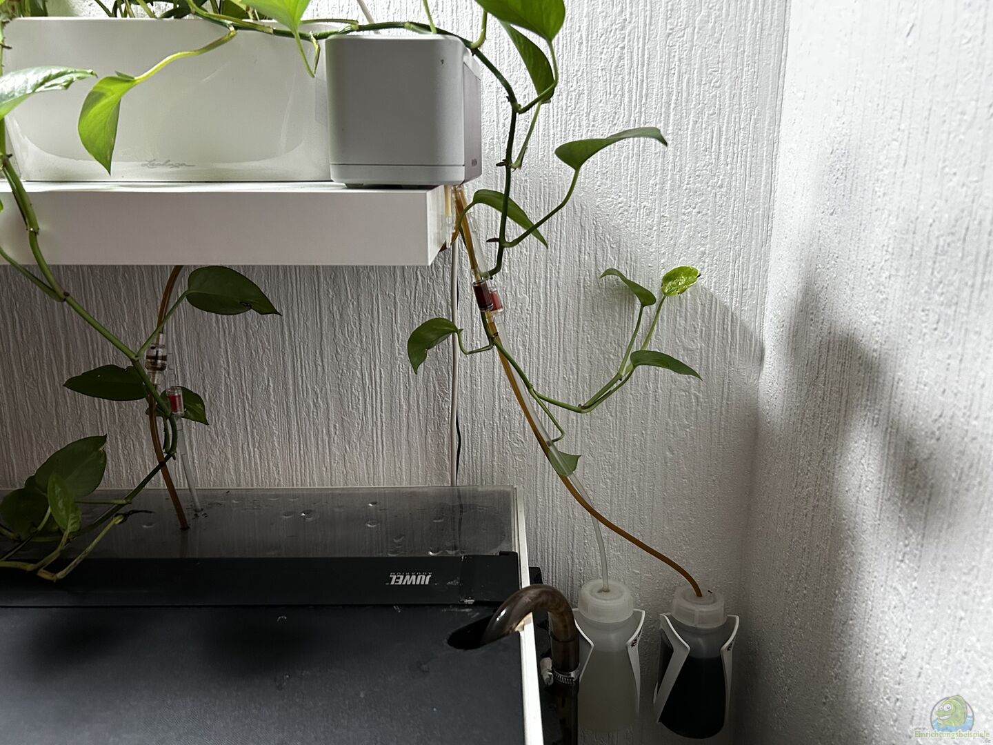 Seit Oktober ‘23 bin ich von einem Standard-Mehrweg CO2 Düngesystem auf das Arka MyScape CO2 Düngesystem umgestiegen wobei das CO2 mittels Natron, Zitronensäure und Wasser selbst hergestellt werden kann. Seit Juni‘24 eine zusätzliche Strömungspumpe für den unteren Bereich mit 900l/h Mir reicht eine Füllung des 3.7L Behälter bei 2-3 Blasen/Sek. etwa 4 Wochen.