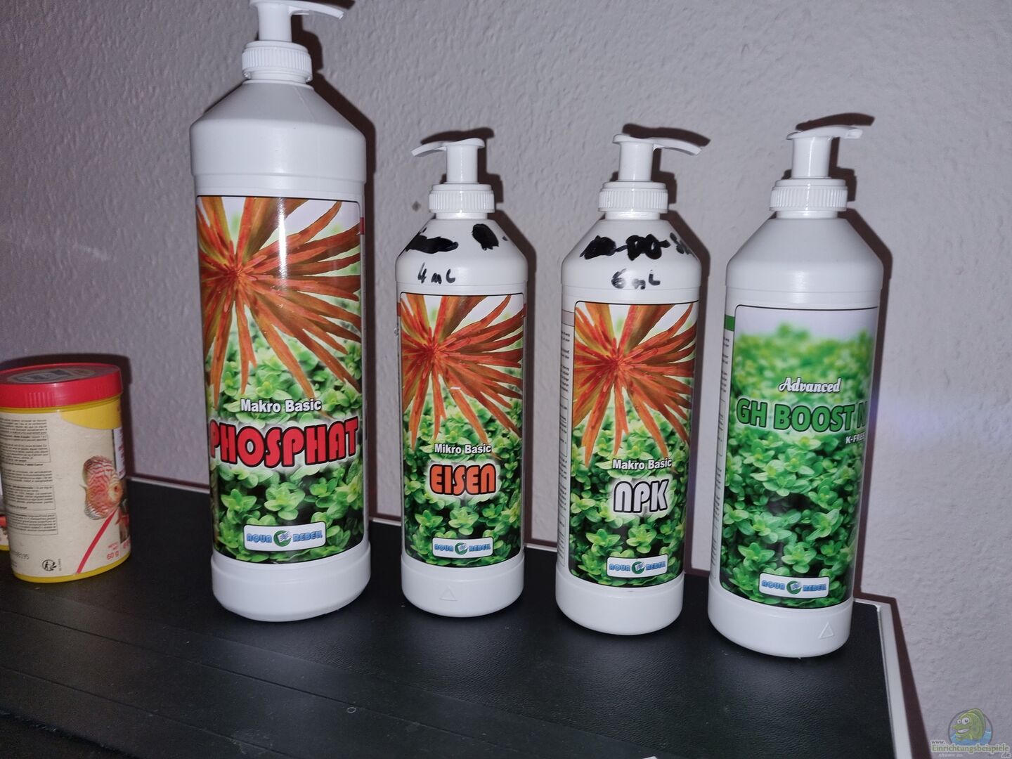 Düngung Düngung Aqua Rebell Makro Basic NPK 6 ml Dienstag Donnerstag Samstags Düngung Aqua Rebell Mikro Basic Eisen 6 ml Montag Dienstag Mittwoch Donnerstag Freitag Sonntag Düngung Aqua Rebell GH Boost Täglich 3 ml Aqua Rebell Makro Basic Phosphat Montag Mittwoch Freitag 4 ml GlasGarten Liquid Humin+ ein mal Die Wochen 10 ml Ich Arbeite mit Huminstoff Zugabe sowie Erlen-Zapfen für eine natürlich Färbung des Wassers und Senkung Hintergrund Pflanzen 5x [...]