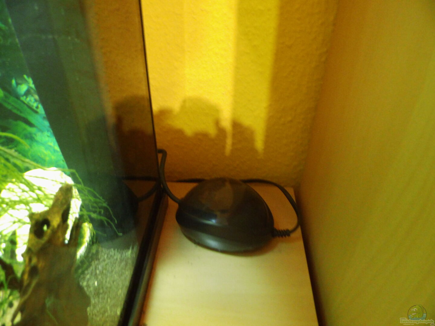 Juwel Heizstab (ist im Filterkasten versteckt) Durchlüfter Marina (läuft 10 Stunden pro Tag) Zeitschaltuhr (für Beleuchtung und Durchlüfter) 12:20 Uhr - 22:20 Uhr