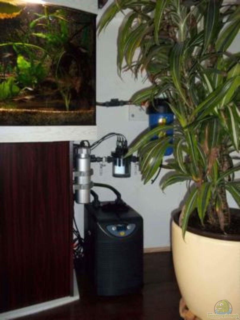 - Bodenheizer - Au??enheizelement 300 Watt ( Filter3 ( Eheim2034 ) ist da angeschlossen ) - CO2 Anlage wird über die PH-Messung des Computer gesteuert - UVC Klärer 11W wird mittels einer Zeitintervallen des Computers gesteuert ( 2x 1 Stunde am Tag ) - Kühlaggregat ist dem Filter 2 ( Eheim2126 ) nachgeschaltet und kühlt ab einer Temperatur von 31 Grad Celsius um diese auf 29 Grad Celsius zu halten oder bei der Nachtabsenkung ab 22:00 Uhr kühlt es auf 27, 6 ° Celsius herrunter. - [...]