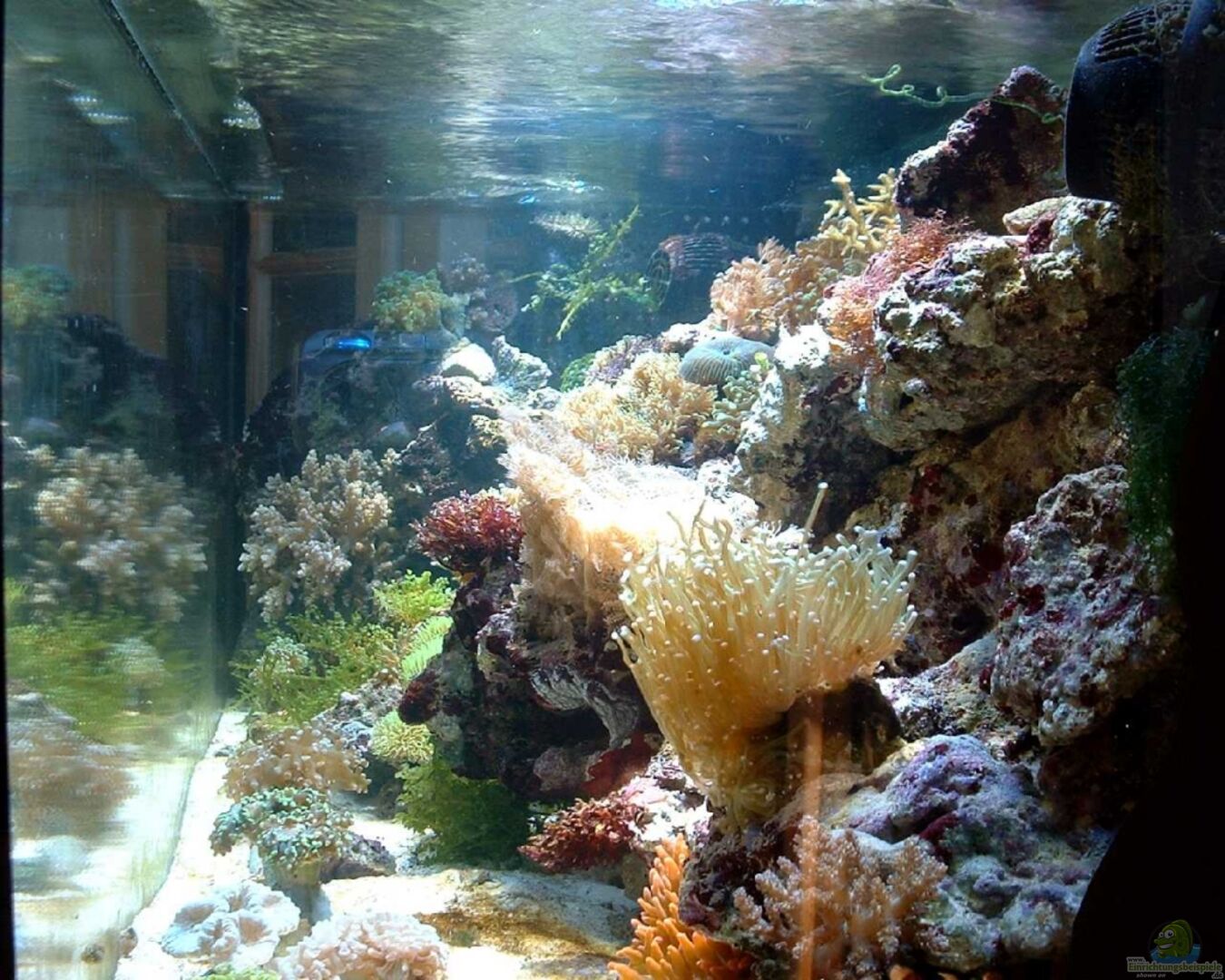 Blau - Violette Scheibenanemone Discosoma. Diese war eine Zugabe des Händlers. Er meinte, beim Kauf einer solchen Menge Lebendgestein sollte ein Bonus rausspringen. 22.05.2011, eine Briareum asbestinum neongrüne Kalkachsenkoralle, 6 Stück Tectus fenestratus Kegelschnecken und 2 Stück Calcinus tibicen orangene Einsiedlerkrebse eingesetzt. 25.06.2011 Will heute mal den aktuellen Besatz ergänzen: Clavularia Viridis, Pachyclavularia, Zoanthus Lions Mouth, einige andere Zoanthus [...]
