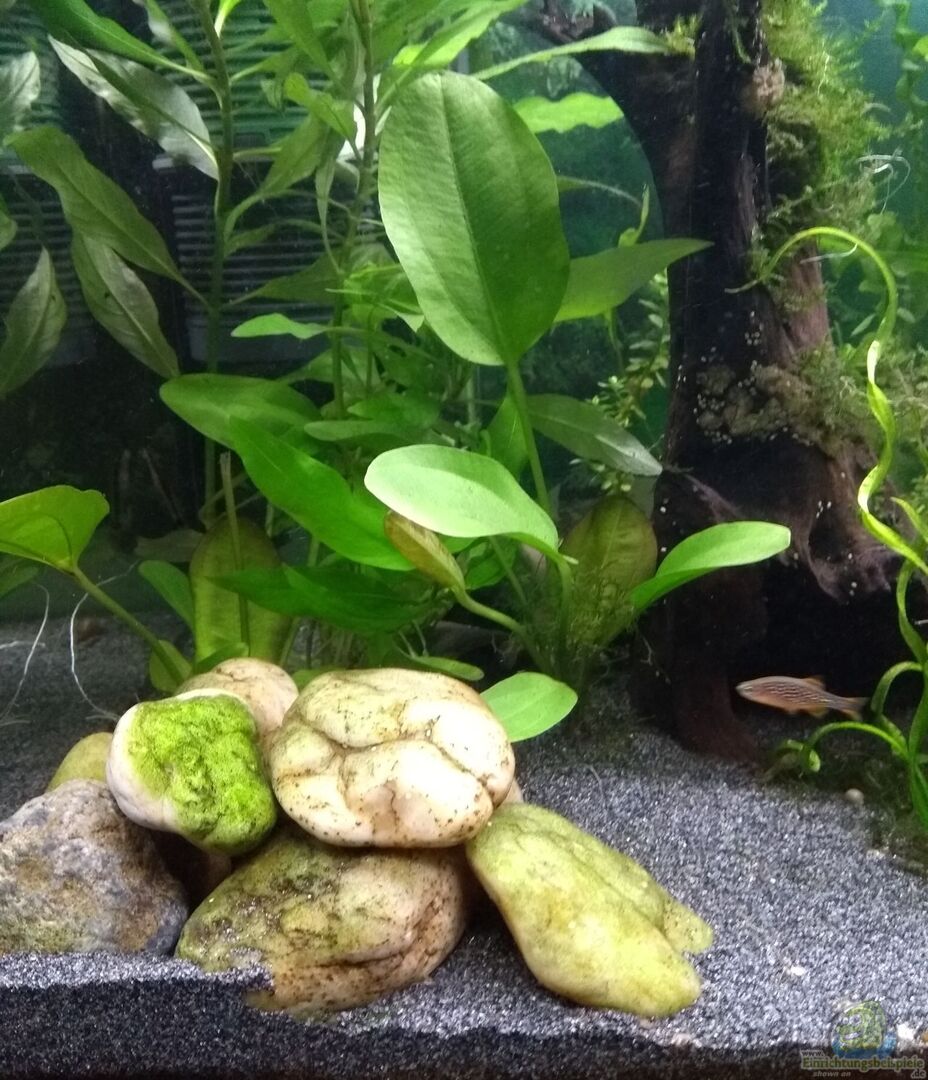 Anubia Gewellte Wasserähre (Aponogeton longiplumulosus) Korkenzieher Schwertpflanze (Echinodorus vesuvius) Brauner Wasserkelch (Cryptocoryne wendtii braun) Echinodorus Dschungelstar Nr. 2 'Kleiner Bär' Javafarn (Microsorum pteropus) Grüne Rotala (Rotala species Green) Gro??es Fettblatt (Bacopa caroliniana emers) Düngung mit Tetra PlantaMin