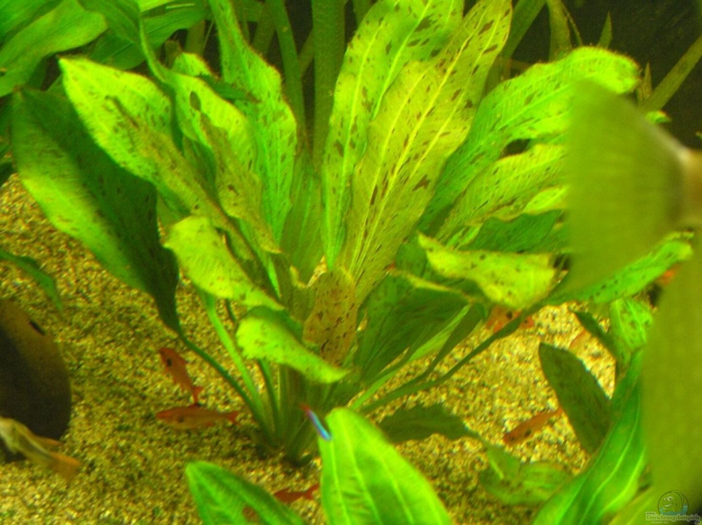 10x Vallisneria gigantea 4x Echinodorus bleheri 3x Echinodorus ozelot 1x Echinodorus ??? 1x Nymphaea lotus red 8xHygrophila polysperma 4x Hydrocotyle leucocephala gedüngt wird mit Fetrolin und Kalium alle zwei bis drei Tage und bei Wasserwechsel gebe ich noch einen Gulavolldünger mit ins Becken