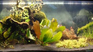 Fontinalis antipyretica gigantea / Quellmoos Fissidens fontanus / Phoenixmoss Hygrophila pinnatifida / Fiederspaltiger Wasserfreund Echinodorus vesuvius / Korkenzieher Schwertpflanze Echinodorus Reni / Kleine Rote Schwertpflanze Ludwigia sp. / Kleine Weinrote Ludwigie Hydrocotyle tripartia / Kleeblatt Nymphaea lotus / Tigerlotus (rot) Blyxa Japonica Pogostemon helferi Düngung: Easy Life Carbo: täglich Easy Life ProFito: täglich Easy Life Ferro: wöchentlich