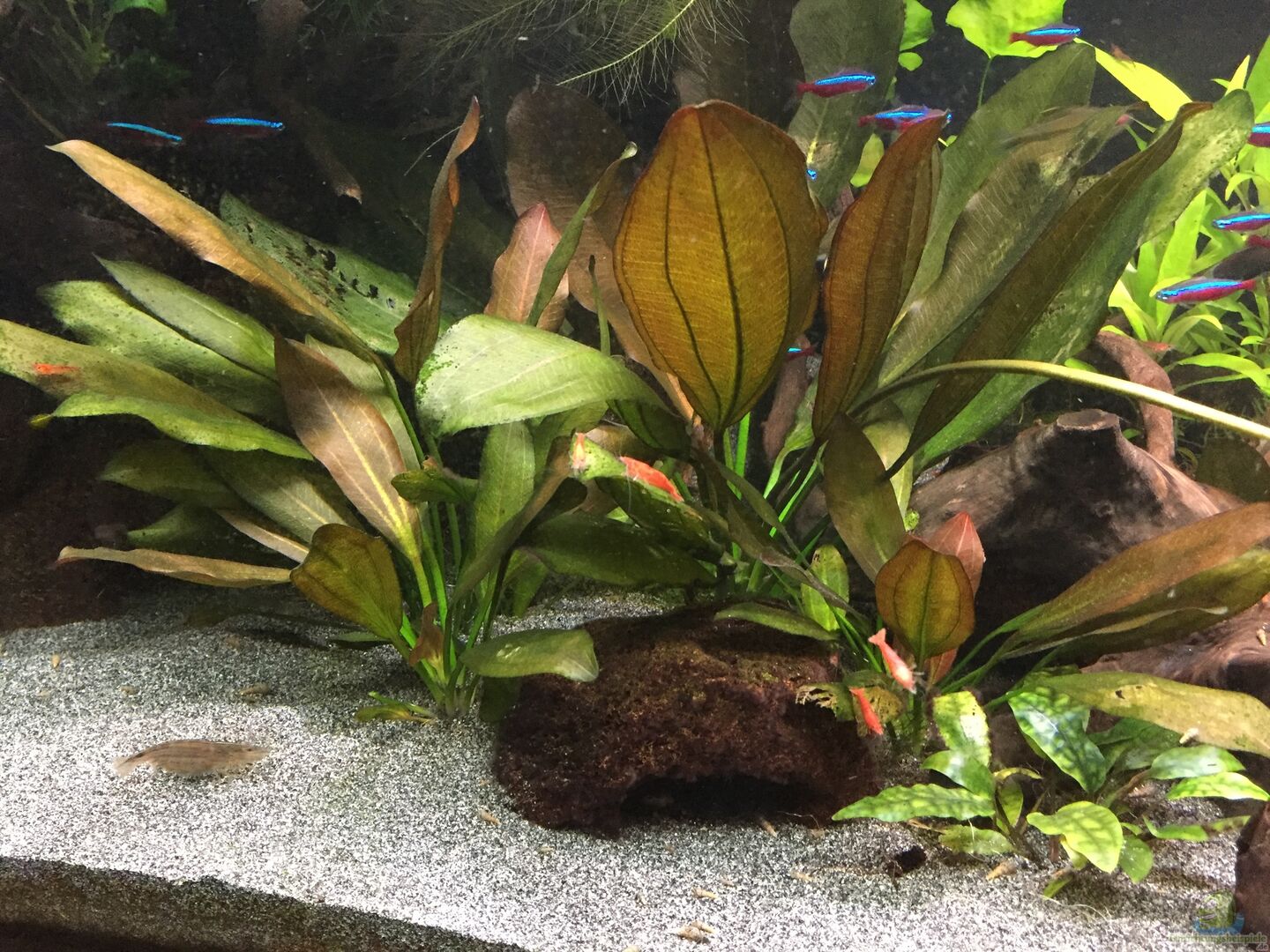 Bei der Bepflanzung habe ich den Fokus auf einfach zu pflegende Arten gelegt, die mit relativ wenig Licht auskommen: Rotala rotundifolia Rundblättrige Rotala Echinodorus Roter Oktober (Schwertpflanze ???Roter Oktober???) Hygrophila ???Siamensis 53B??? (Kirschblatt) Lagenandra meboldi ???Red??? (Meebolds Lagenandra) Nymphoides hydrophylla Taiwan (Wasserblättrige Seekanne) Cryptocoryne pontederifolia (Herzblatt-Wasserkelch) Cryptocoryne x purpurea (Purpur Wasserkelch) Cryptocoryne [...]