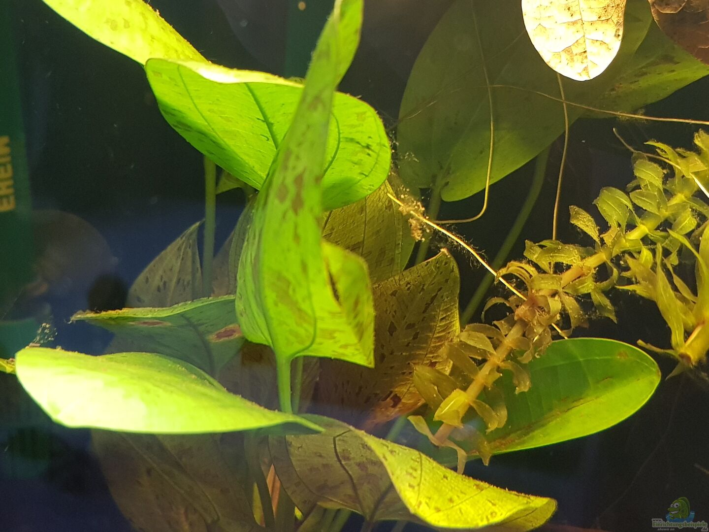 1x Echinodorus Dschungelstar 1x Bucephalandra spec. Wavy Leaf 1x Bucephalandra spec. ?? 1x Anubias barteri nana Bonsai Javamoos 1x Schwimmpflanze, die ich nicht näher bestimmen konnte