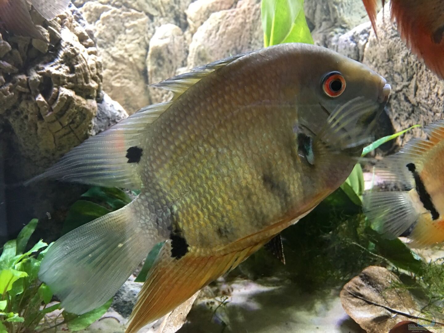 Hier findest du alle wichtigen Infos und viele Beispiele für die Einrichtung eines Aquariums für Heros efasciatus (Rotkeil-Augenfleckbuntbarsch).