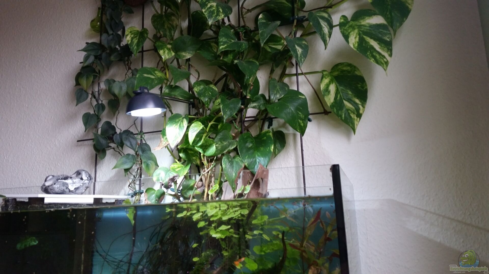 Zimmerpflanzen die ins Aquarium wurzeln: Efeutute (Epipremnum) Baumfreund (Philodendron) Wasserpflanzen: Schwertpflanze (Echinodorus Ozelot) Brasilianischer Wassernabel (Hygrocotyle Leucocephala) Rotes/Rosa Papageienblatt (Alternanthera reineckii ) Javafarn (Microsorum pteropus) irgendwann war auch noch ein Moos drin, was hier und da noch wächst neu --> Murdannia Keisak