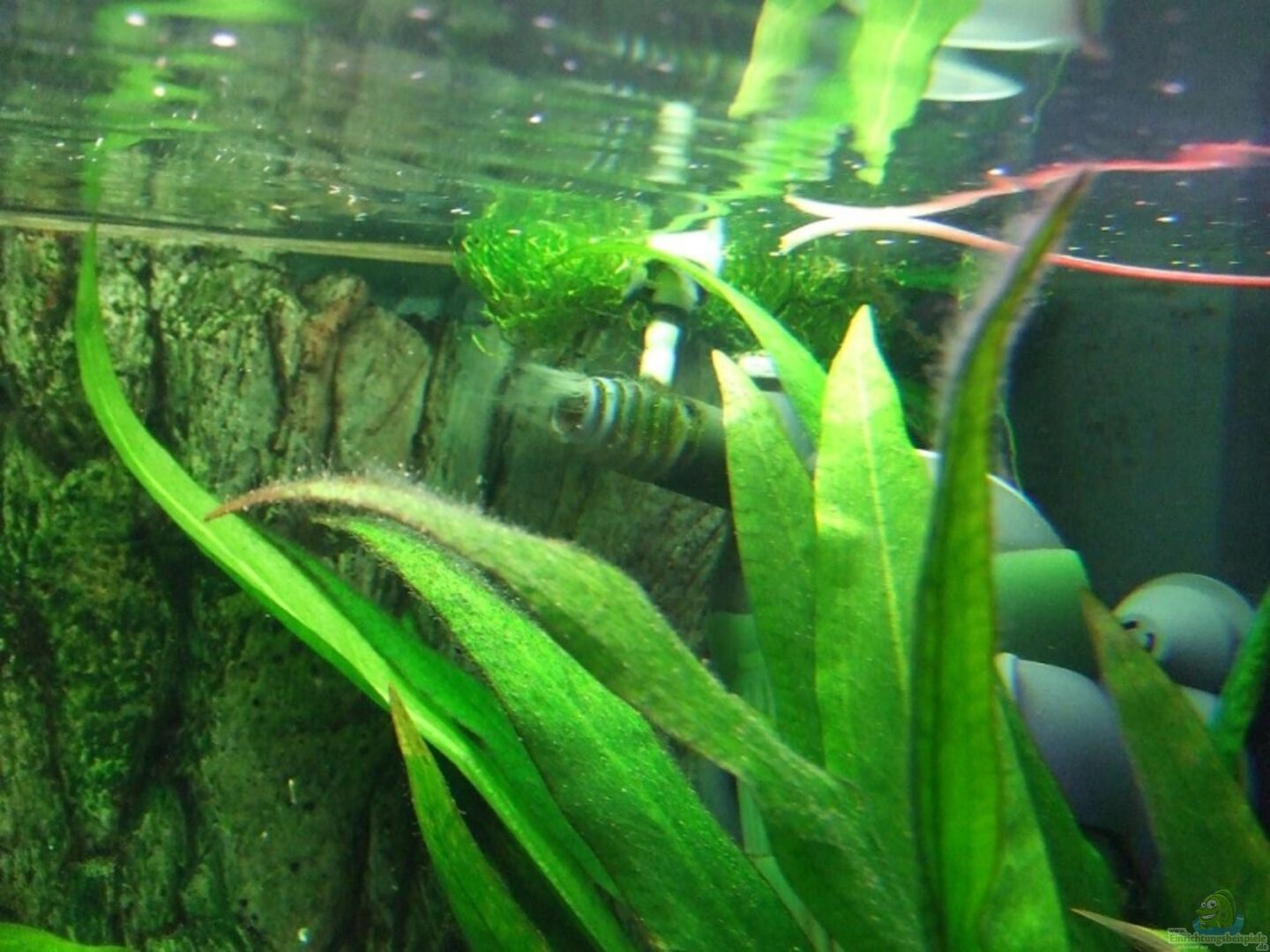Carbo Plus hinter der Rückwand, 100 W Heizstab im Filter, Aquarium steht auf einer Styroporplatte