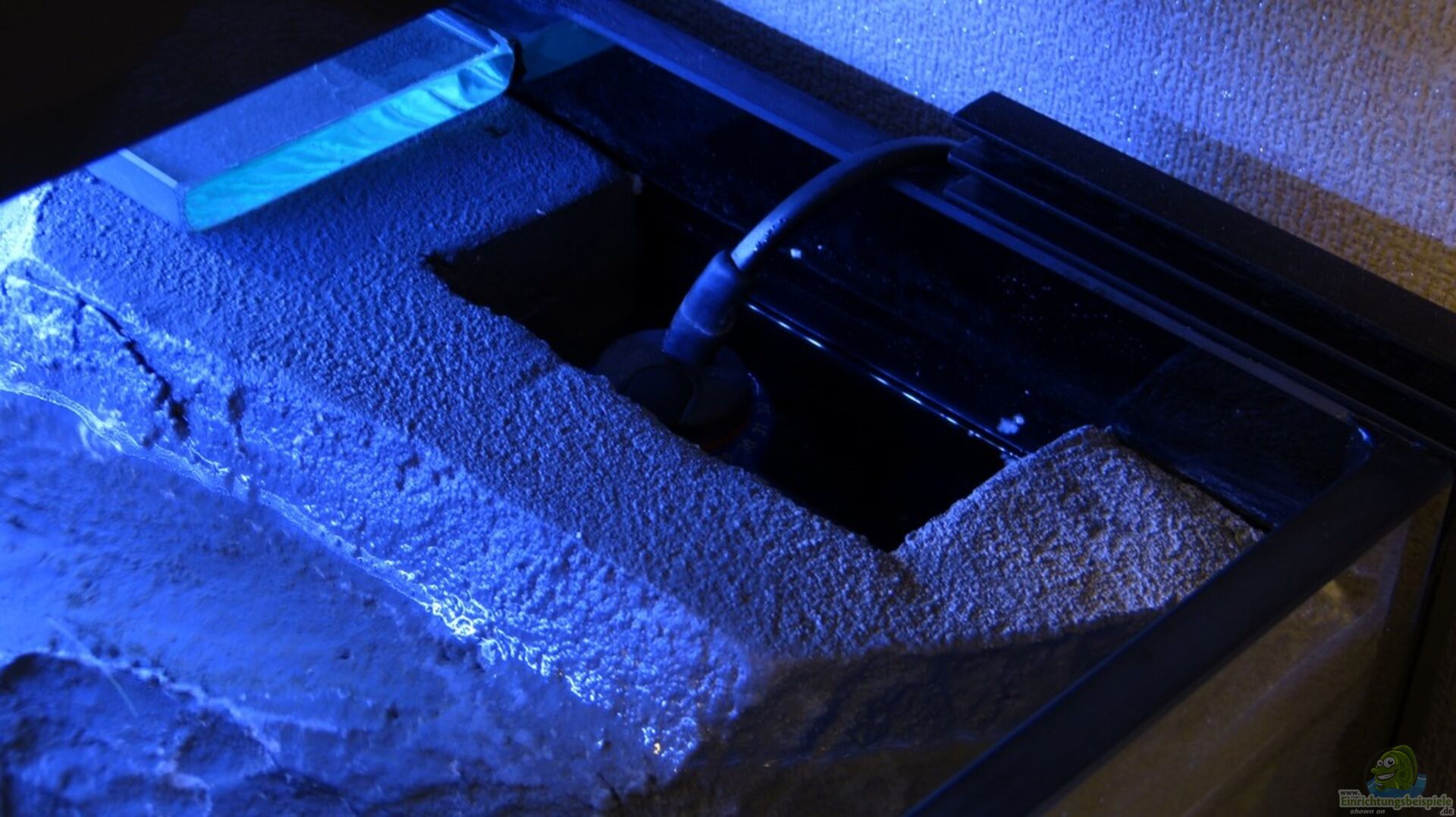 Beheizt wird das Aquarium mit dem Eheim thermocontrol Regelheizer 300 Watt auf konstante 25°C. Die Jebao WP-25 Strömungspumpe liefert 8000l/h bei 23Watt, wird jedoch nur mit 50% Leistung zum Aufwirbeln der Wasseroberfläche genutzt. Um den Sauerstoffgehalt noch weiter anzureichern kommt noch zusätzlich ein Söchting Oxydator A zum Einsatz.