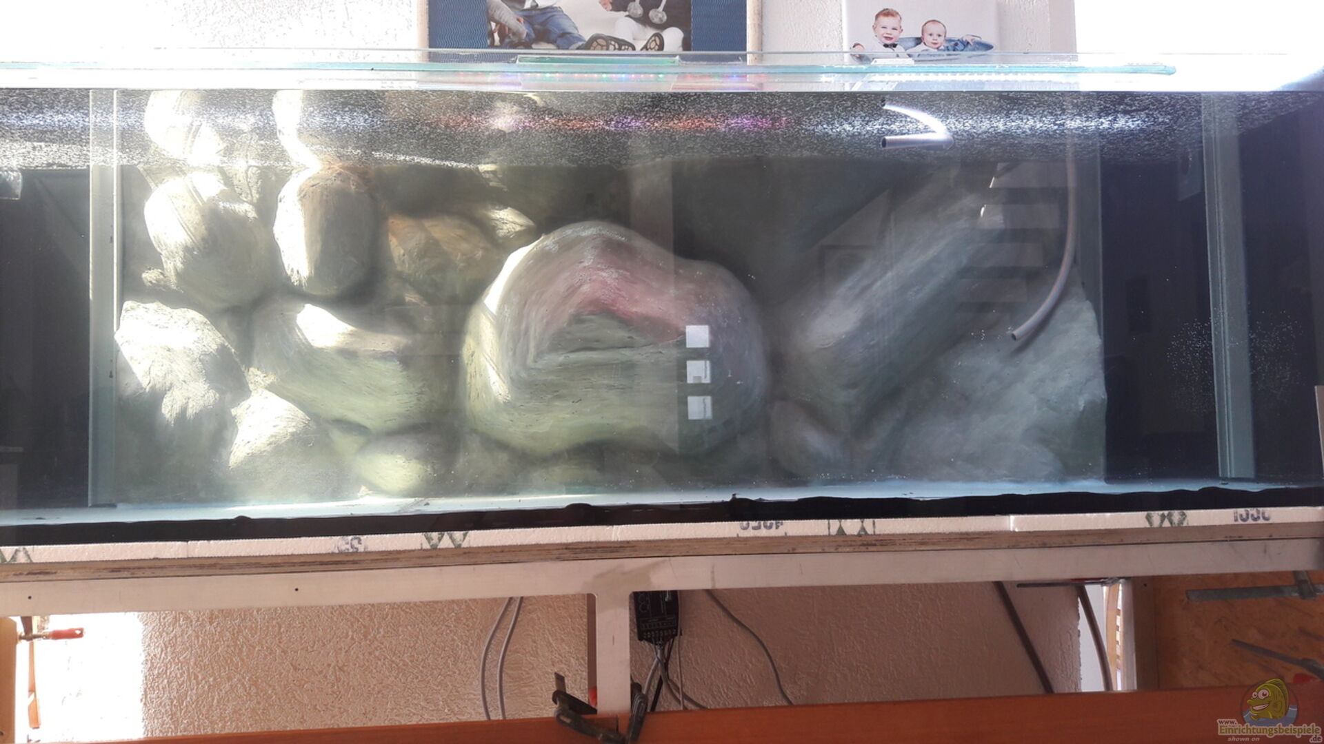 Rückwand wurde selbst angefertigt, Verkleidung des Gestell in Eigenbau sowie die Abdeckung. 2x Eck HMF wurde in Eigenbau ins Becken verbaut