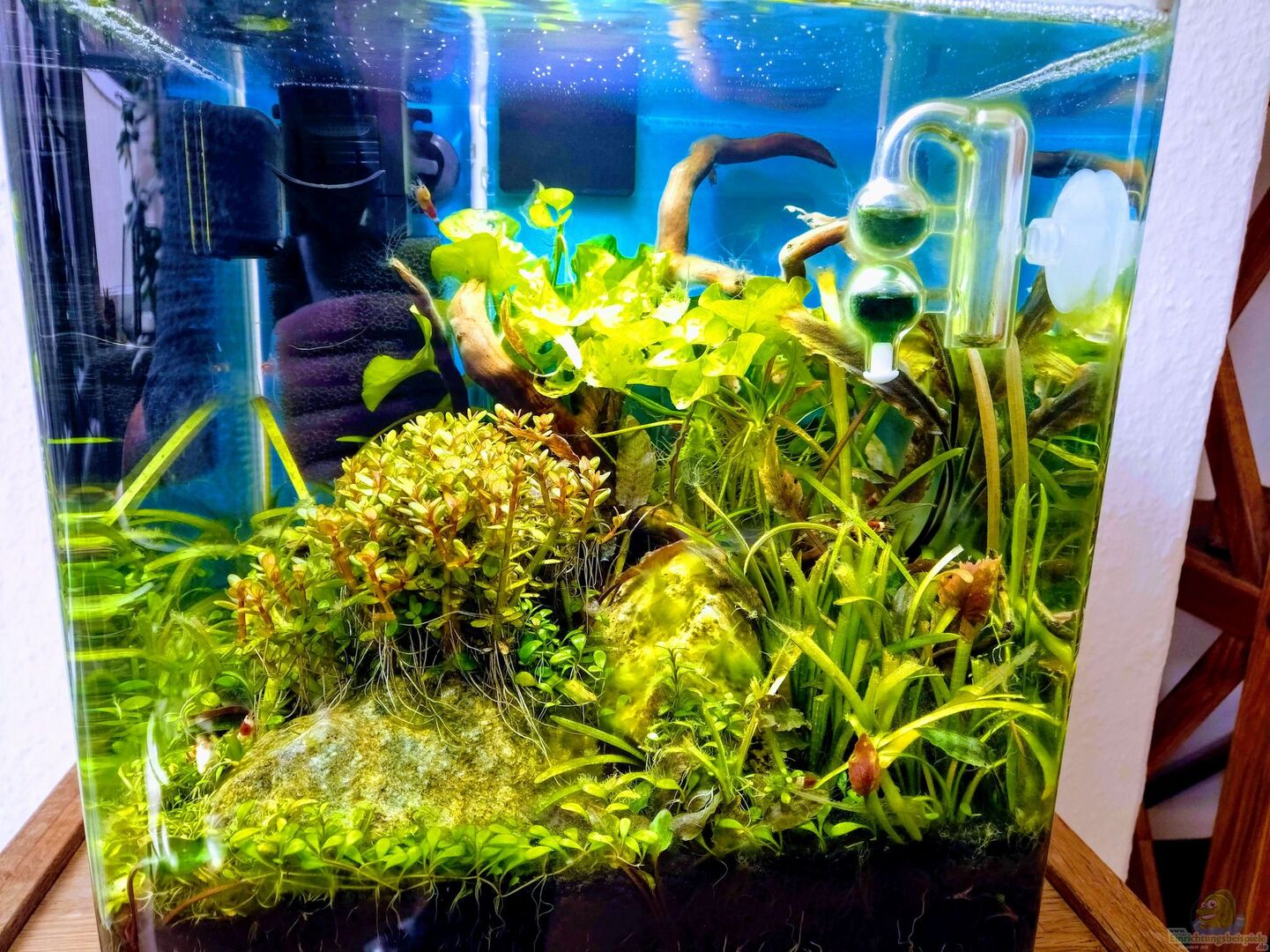 Das Becken ist ein eheim AquaStyle 16 und steht auf einem Roal Oak Regal aus dem Dänischen Bettenlager.