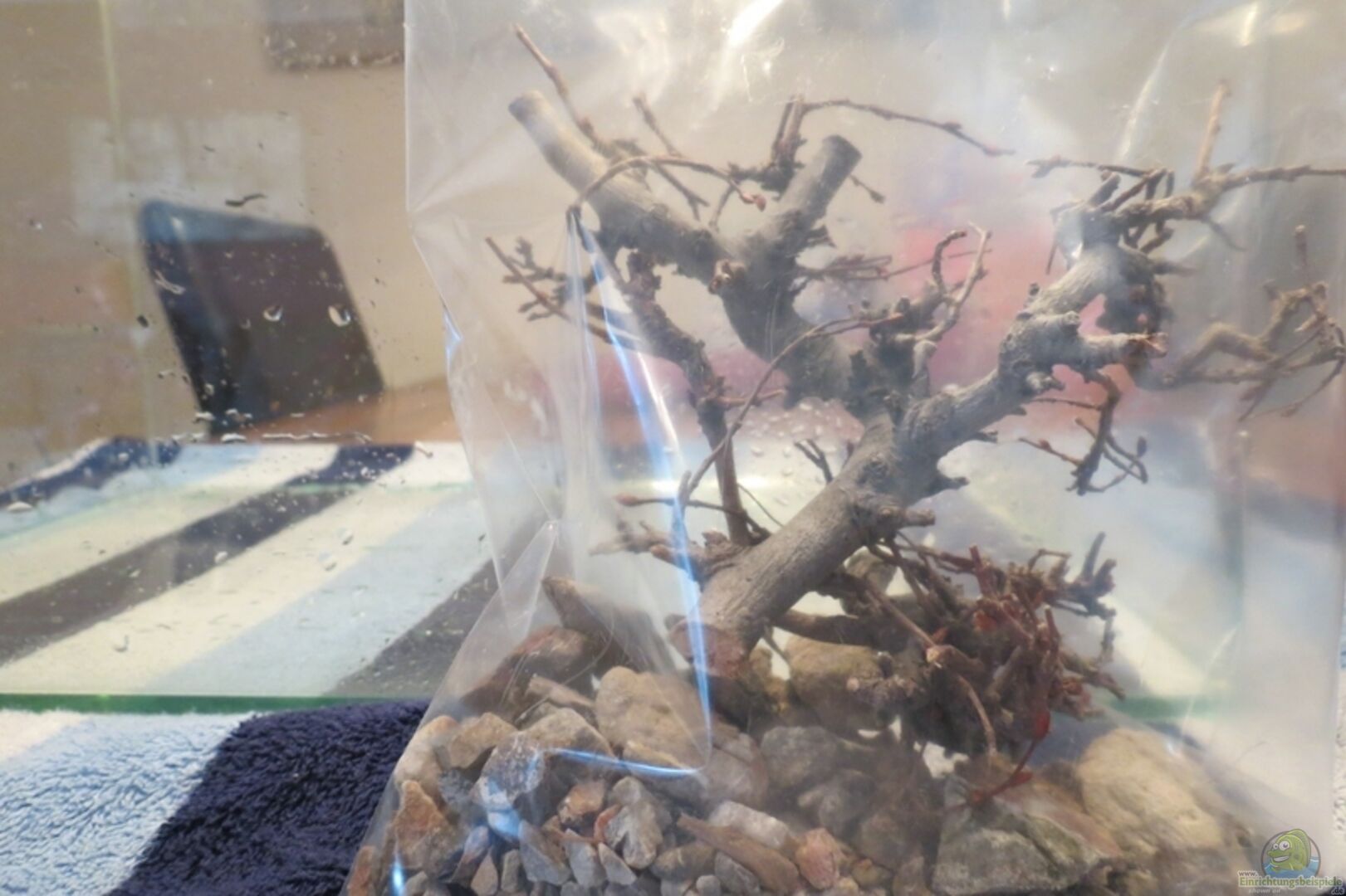Das Hardscape besteht aus etwa 10 Kg "Mini-Landschaft" und 2 kleinen Wurzelhölzern, die sich meines Wissens nach "Mini-Bonsai" nennen (genaue Bezeichnung kenne ich leider nicht). Die Minilandschaft ist klar das dominierende Element in diesem Becken und soll bei gutem Wuchs der Bodendecker, durch die geschlossene grüne Decke noch hervorgehoben werden.