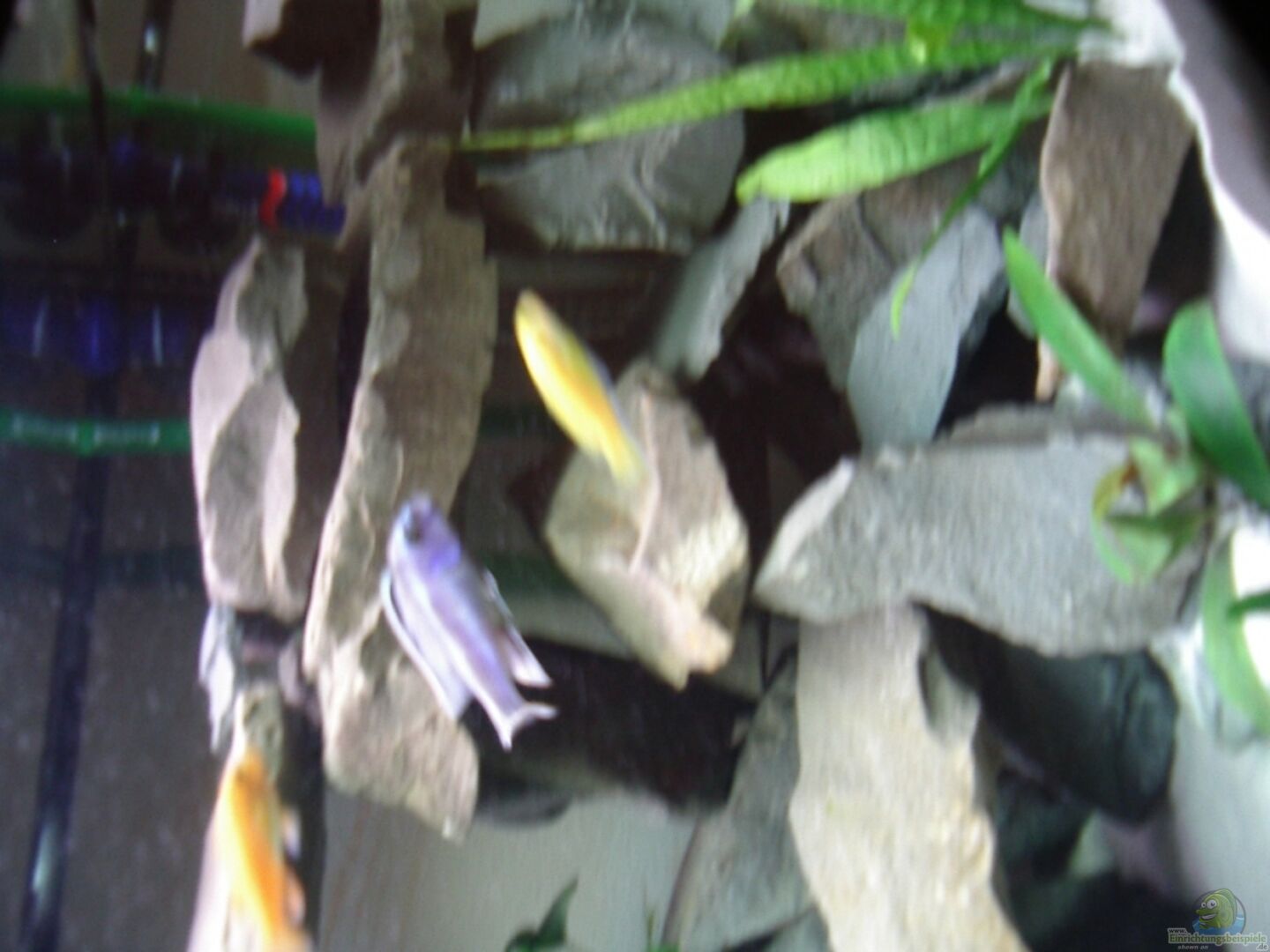 Steinaufbauten aus dunklen Steinen, so aufgebaut, dass genügend Rückzugsmöglichkeiten für die Fische gegeben sind.
